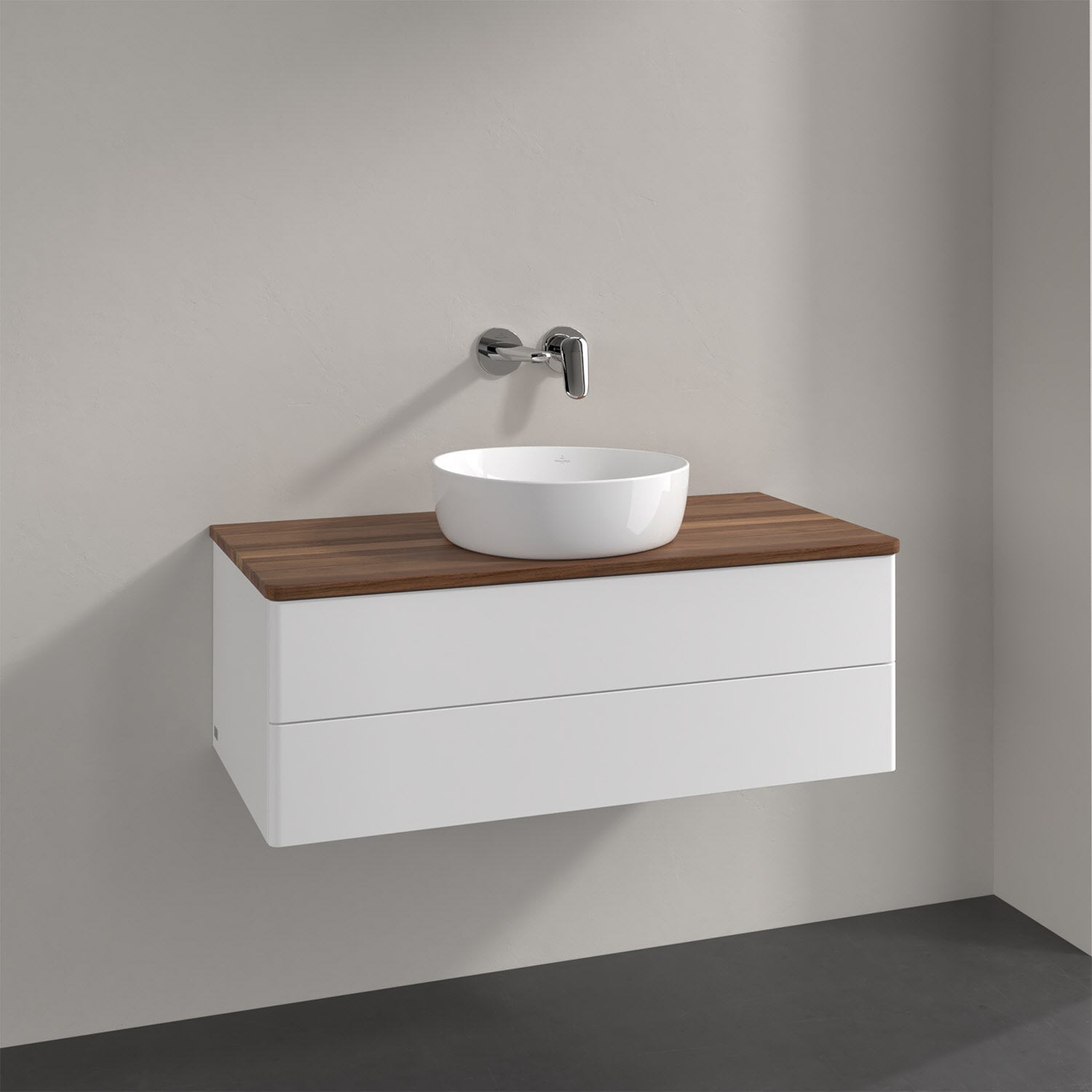 Villeroy & Boch Antao Waschbeckenunterschrank, 100 x 19 cm, 2 Auszüge, Fronten ohne Struktur, ohne Hahnloch