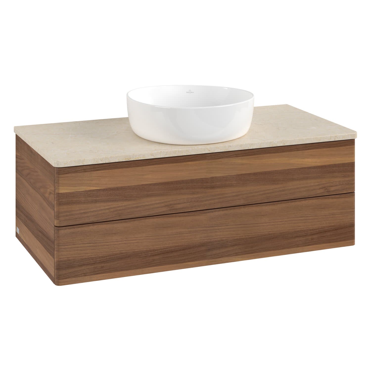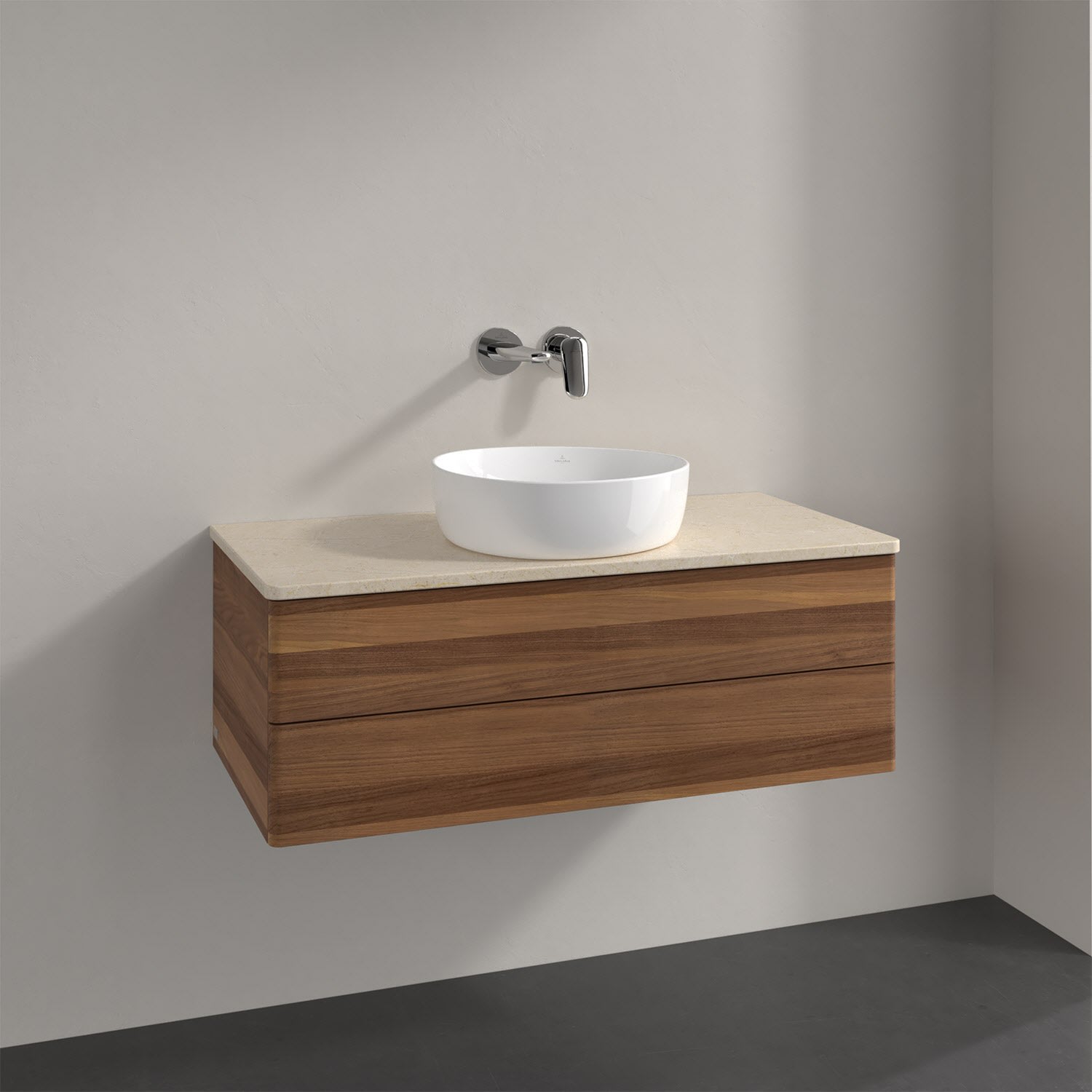 Villeroy & Boch Antao Waschbeckenunterschrank, 100 x 19 cm, 2 Auszüge, Fronten ohne Struktur, ohne Hahnloch
