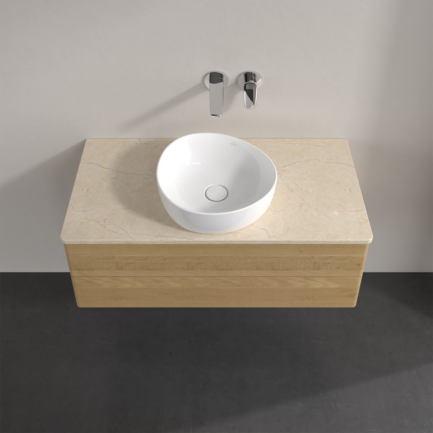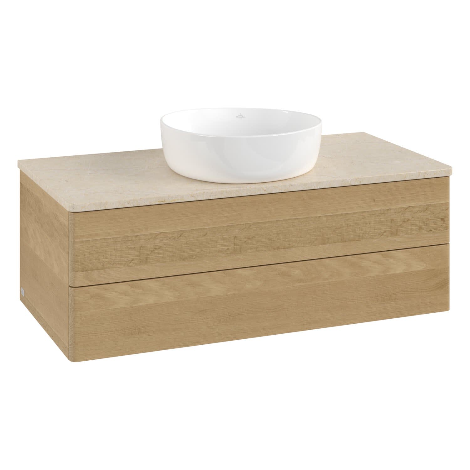 Villeroy & Boch Antao Waschbeckenunterschrank, 100 x 19 cm, 2 Auszüge, Fronten ohne Struktur, ohne Hahnloch