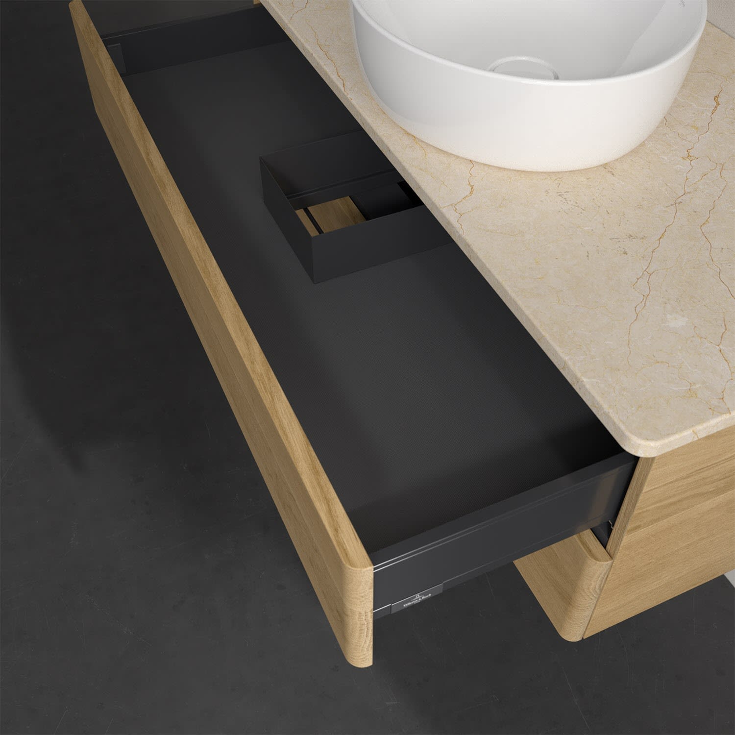 - kein Umfallen oder Verrutschen von Pflegeprodukten in den Schubladen dank rutschhemmendem Boden