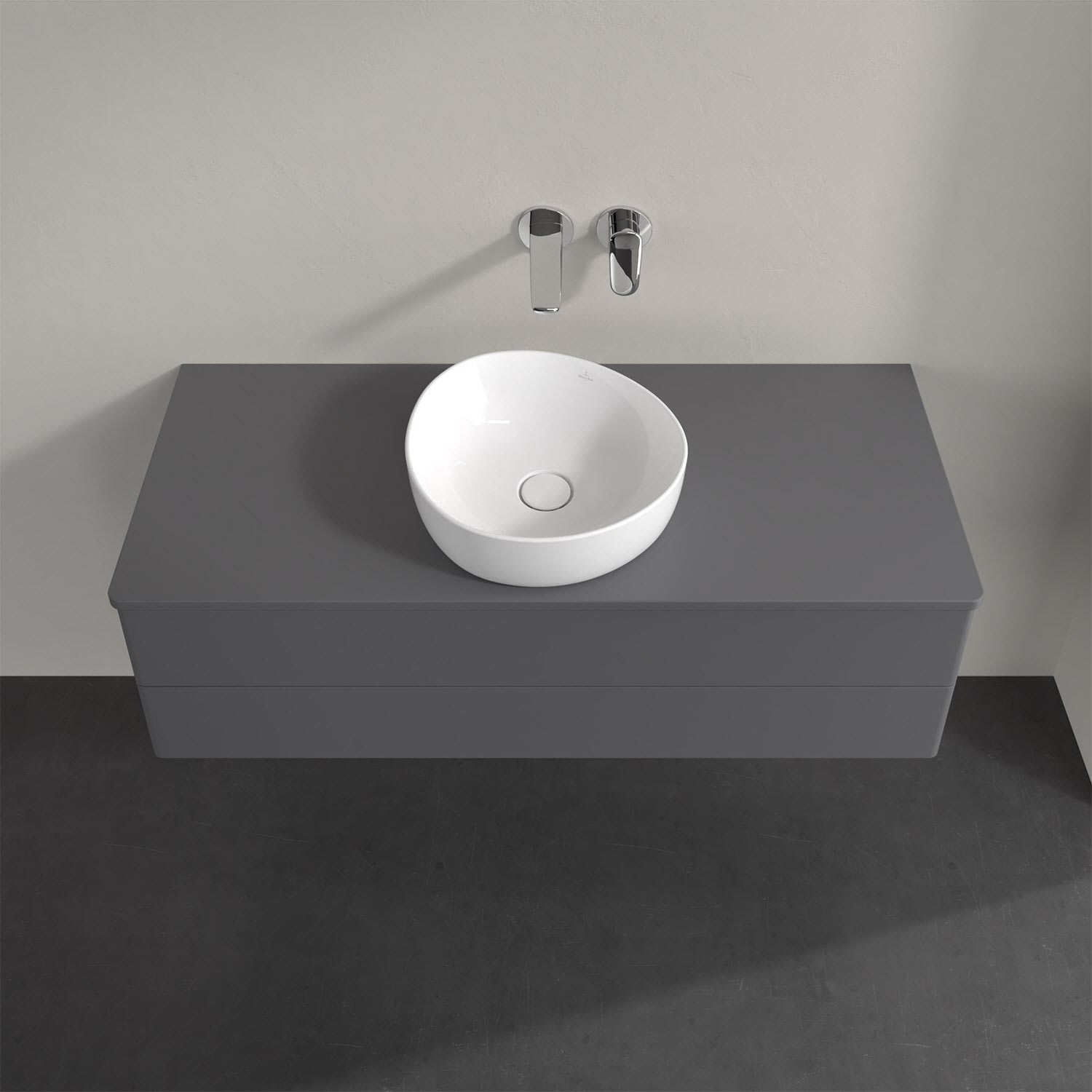 Für diesen Waschbeckenunterschrank stehen Ihnen Aufsatzwaschtische aus verschiedenen Serien zur Verfügung (siehe "Passliste" unter Downloads). Ein ausgewähltes Beispiel finden Sie im Zubehör. Den Waschtisch bitte separat mitbestellen.