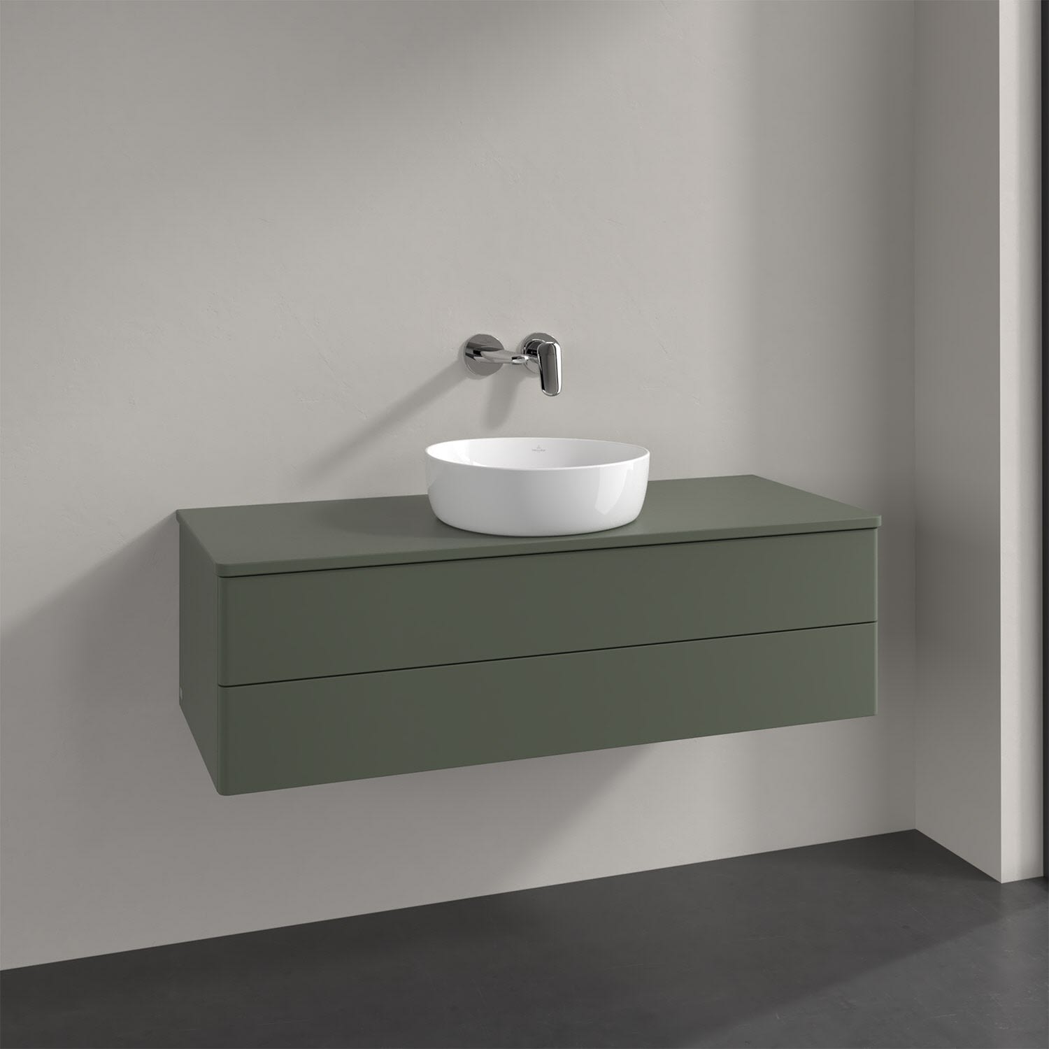 Villeroy & Boch Antao Waschbeckenunterschrank, 120 x 19 cm, 2 Auszüge, Fronten ohne Struktur, ohne Hahnloch, für Waschtisch mittig