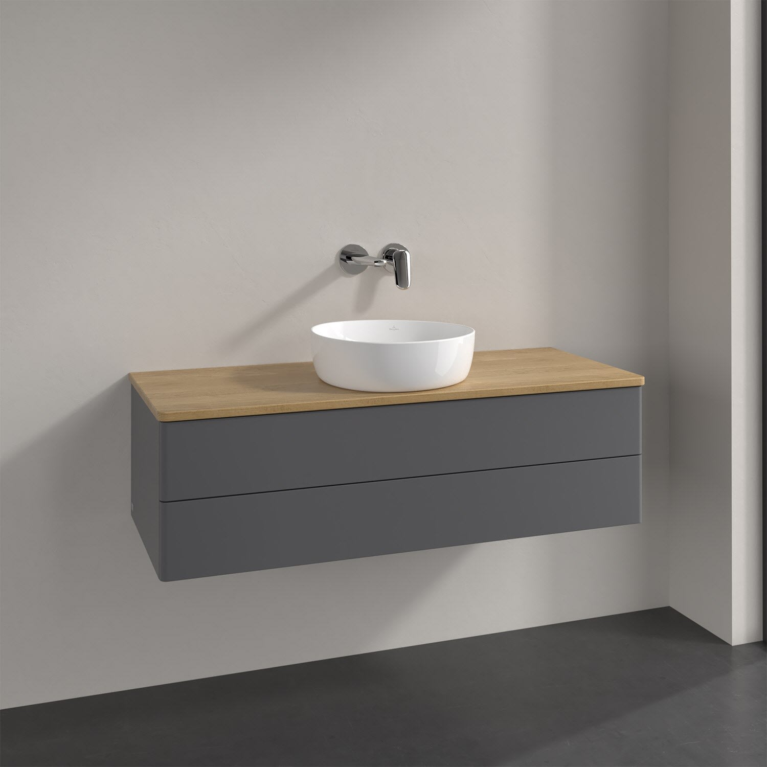 Villeroy & Boch Antao Waschbeckenunterschrank, 120 x 19 cm, 2 Auszüge, Fronten ohne Struktur, ohne Hahnloch, für Waschtisch mittig