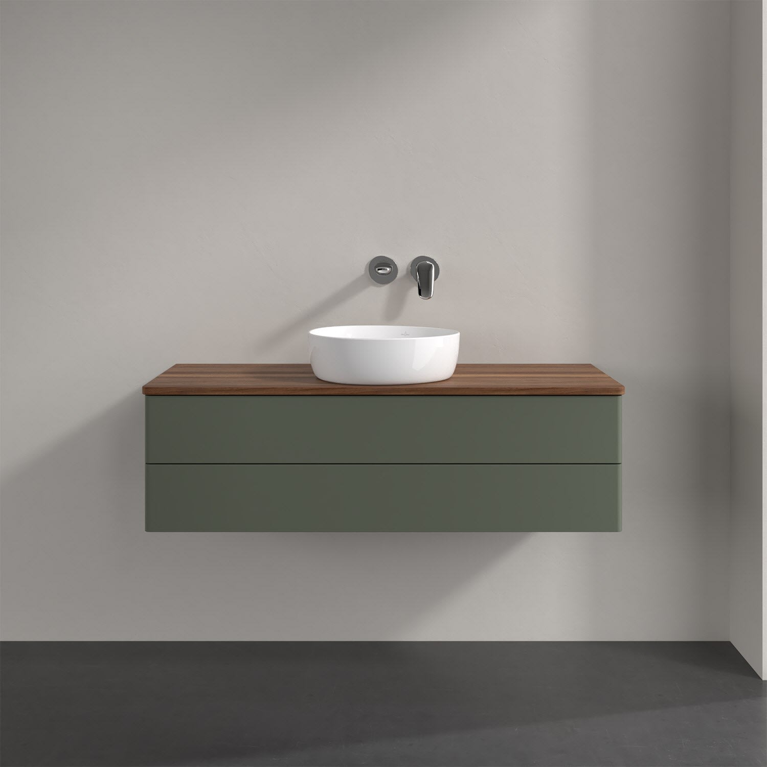 Villeroy & Boch Antao Waschbeckenunterschrank, 120 x 19 cm, 2 Auszüge, Fronten ohne Struktur, ohne Hahnloch, für Waschtisch mittig