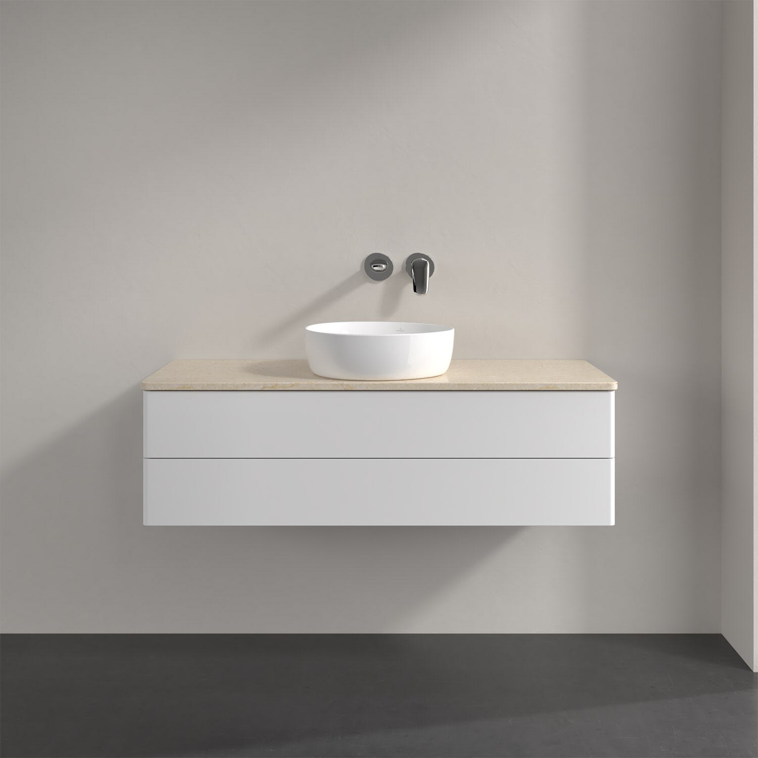Villeroy & Boch Antao Waschbeckenunterschrank, 120 x 19 cm, 2 Auszüge, Fronten ohne Struktur, ohne Hahnloch, für Waschtisch mittig