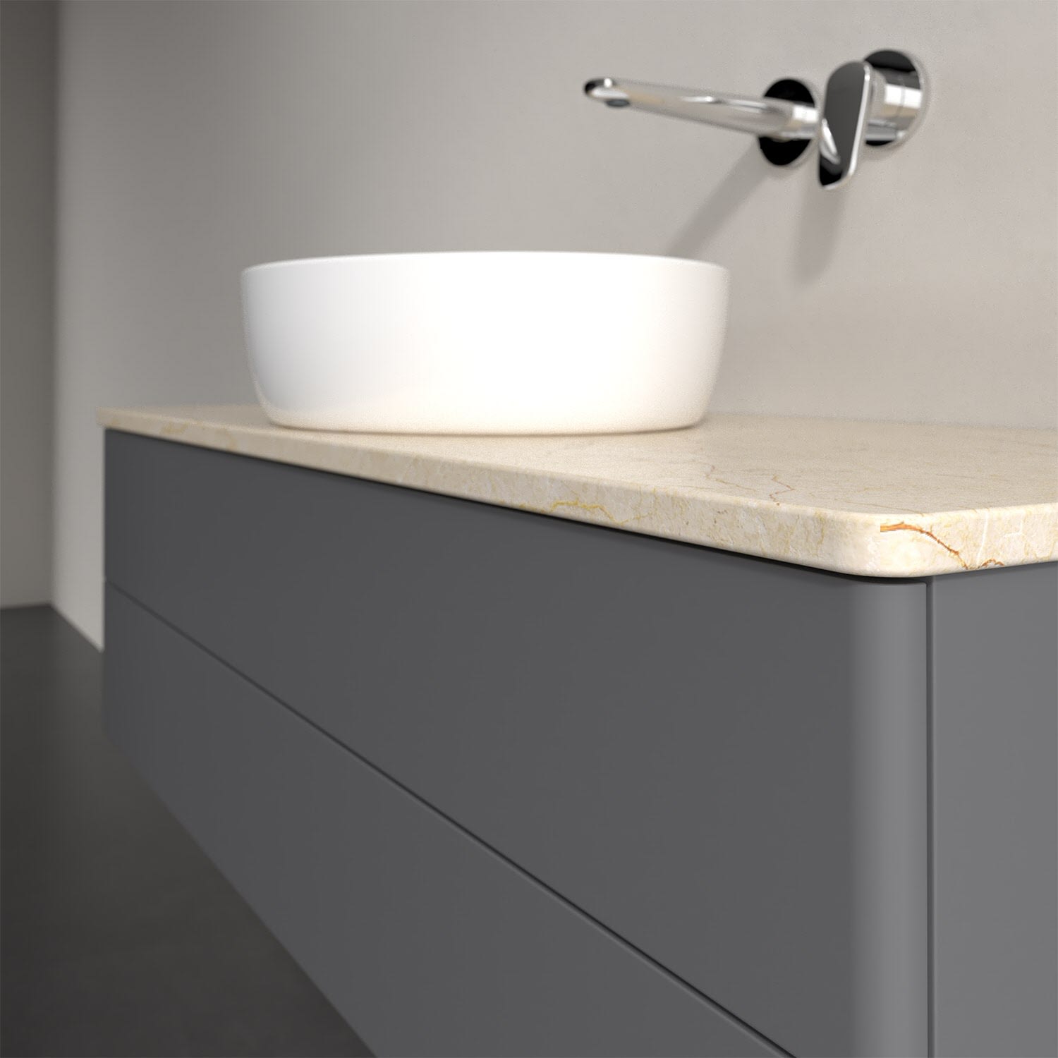 Für diesen Waschbeckenunterschrank stehen Ihnen Aufsatzwaschtische aus verschiedenen Serien zur Verfügung (siehe "Passliste" unter Downloads). Ein ausgewähltes Beispiel finden Sie im Zubehör. Den Waschtisch bitte separat mitbestellen.