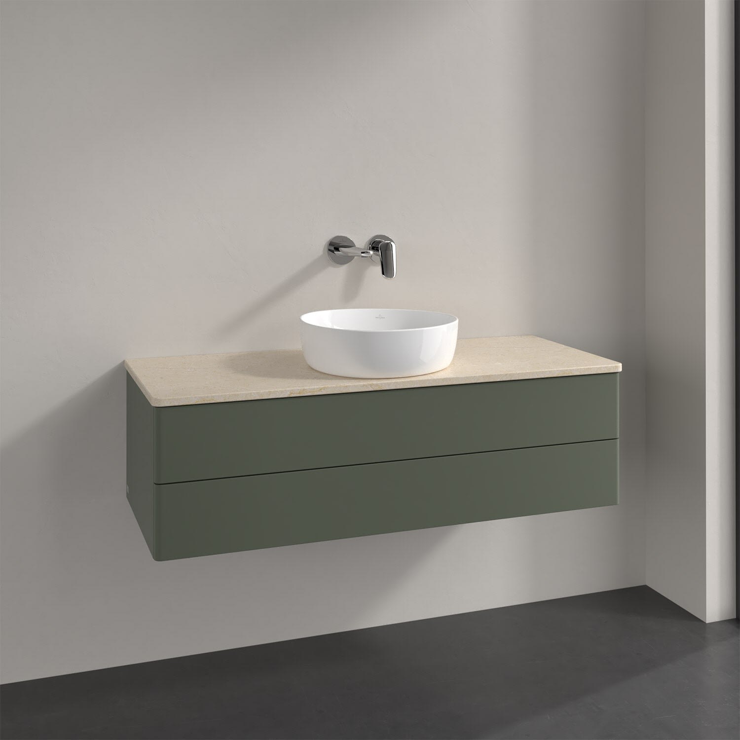 Villeroy & Boch Antao Waschbeckenunterschrank, 120 x 19 cm, 2 Auszüge, Fronten ohne Struktur, ohne Hahnloch, für Waschtisch mittig