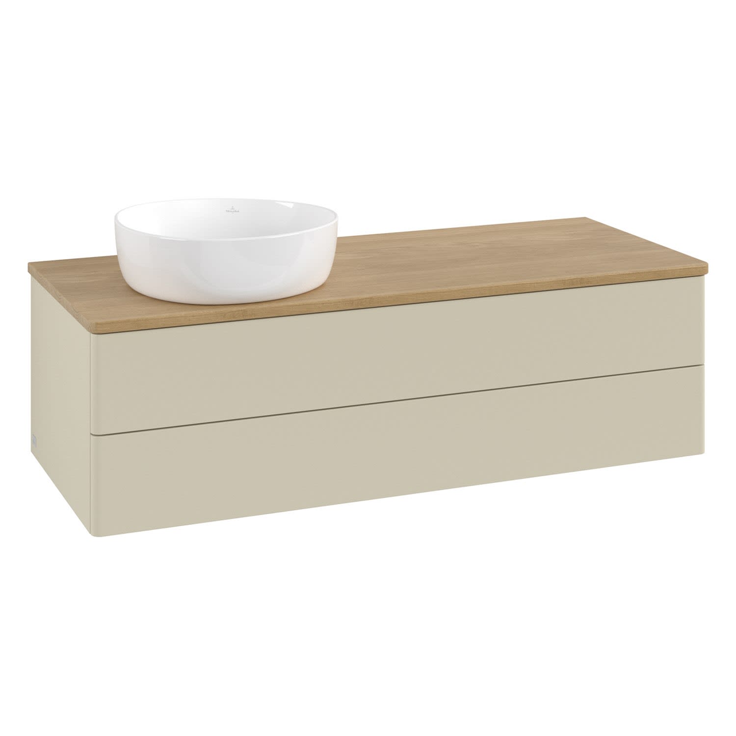 Villeroy & Boch Antao Waschbeckenunterschrank, 120 x 19 cm, 2 Auszüge, Fronten ohne Struktur, ohne Hahnloch, für Waschtisch links