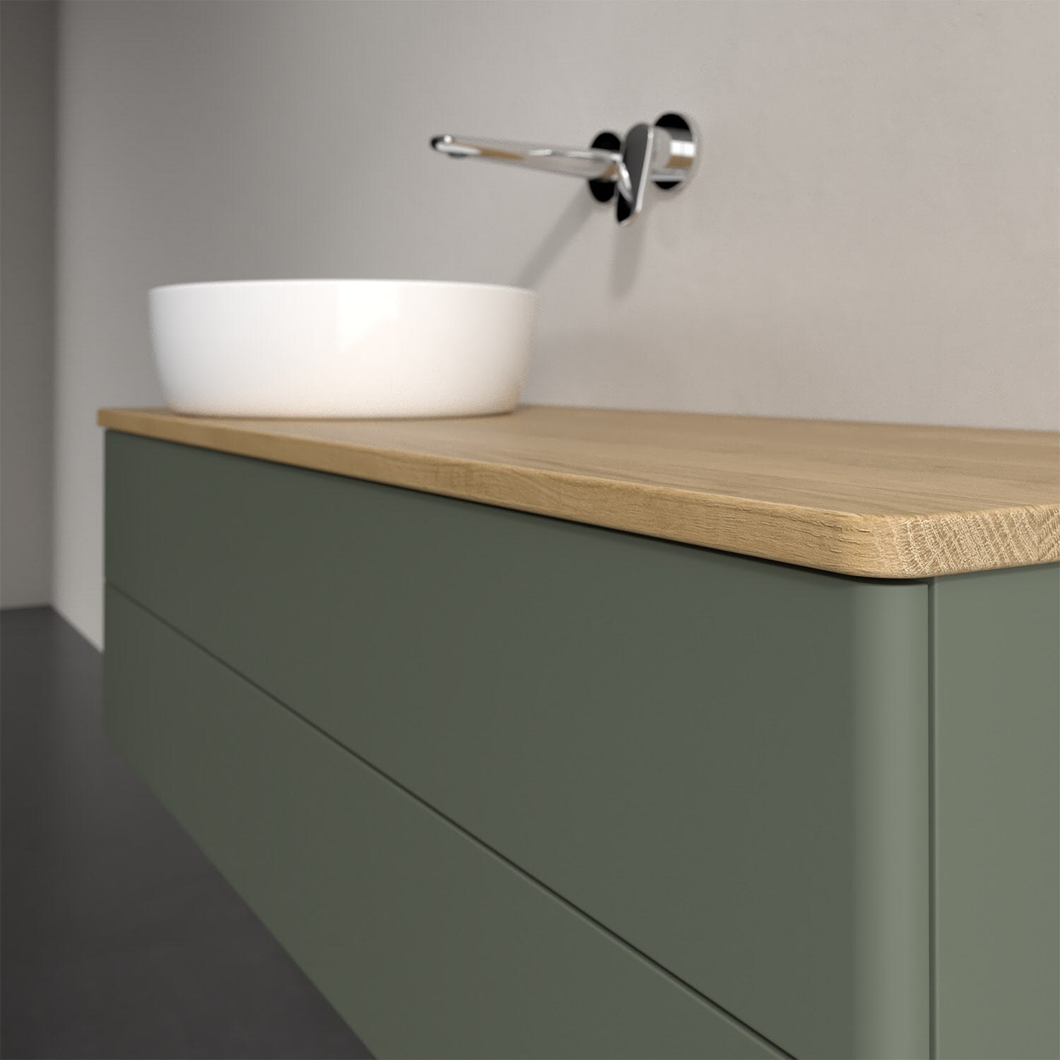 Der wandhängende Antao Waschtischunterschrank von Villeroy & Boch bietet nicht nur jede Menge Stauraum – er ist dank seines naturinspirierten Designs mit seinen abgerundeten Kanten auch noch besonders stilvoll und schafft eine gemütliche Atmosphäre im Badezimmer. Auf der Waschtischplatte bietet sich seitlich des Waschtischs viel Platz für Zahnbürstenbecher oder Seifenspender. Zwei geräumige Auszüge bieten viel Platz, um alles Notwendige zu verstauen und Ordnung zu halten. Öffnen lassen sie sich durch leichten Druck auf die grifflose Front. Dank Vollauszug hat man immer alles im Blick und der Antirutschboden verhindert ein Umfallen oder Verrutschen der Gegenstände. Einfach clever! Für eine besonders leichte Pflege sorgt die mehrschichtig deckend lackierte Oberfläche. Bei der Ausführung in Massivholz wird dank des verarbeiteten Massivholzes jedes Möbel zu einem Unikat, das sich durch das lebendige Naturmaterial durch seine einzigartige Struktur und Maserung auszeichnet.