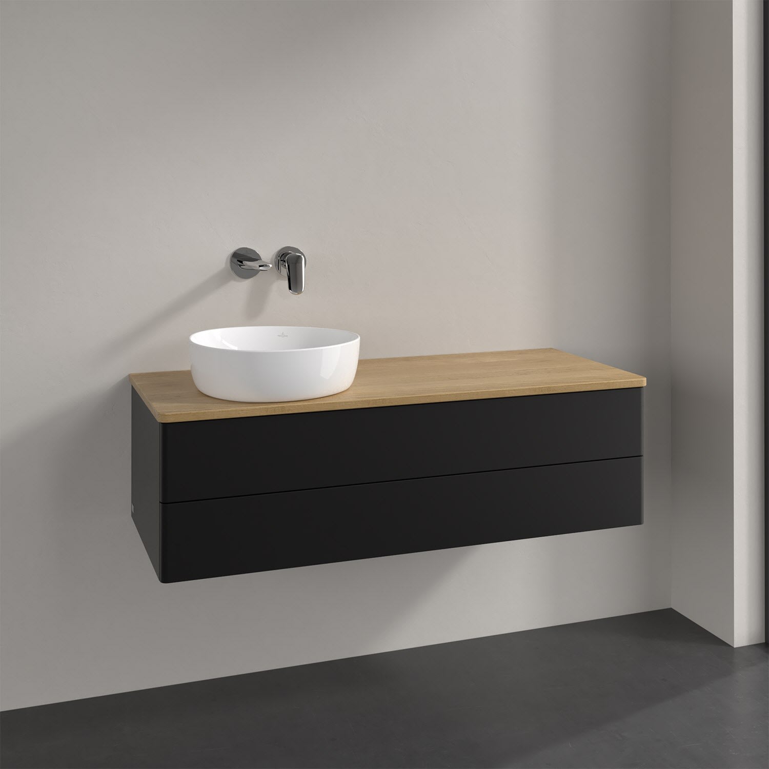 Villeroy & Boch Antao Waschbeckenunterschrank, 120 x 19 cm, 2 Auszüge, Fronten ohne Struktur, ohne Hahnloch, für Waschtisch links