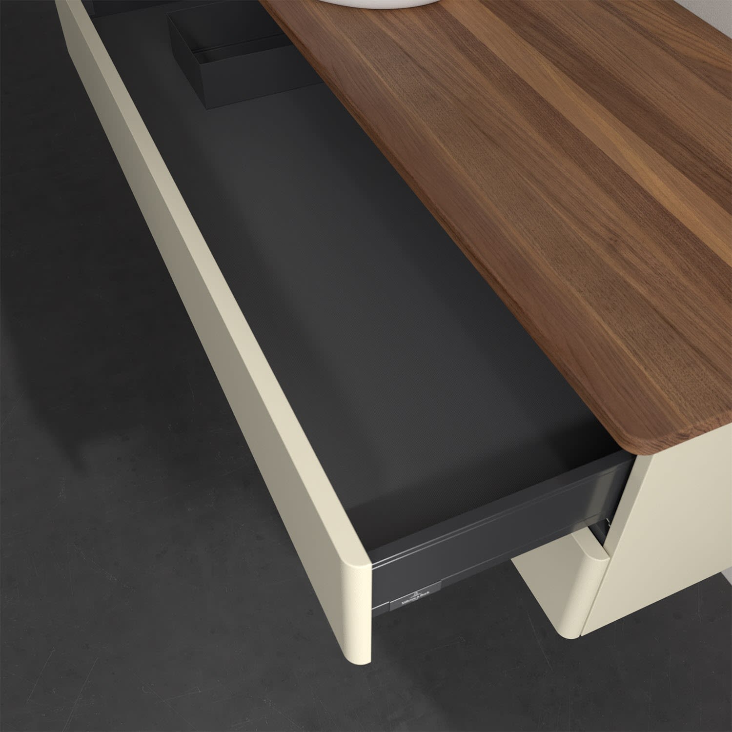 - kein Umfallen oder Verrutschen von Pflegeprodukten in den Schubladen dank rutschhemmendem Boden