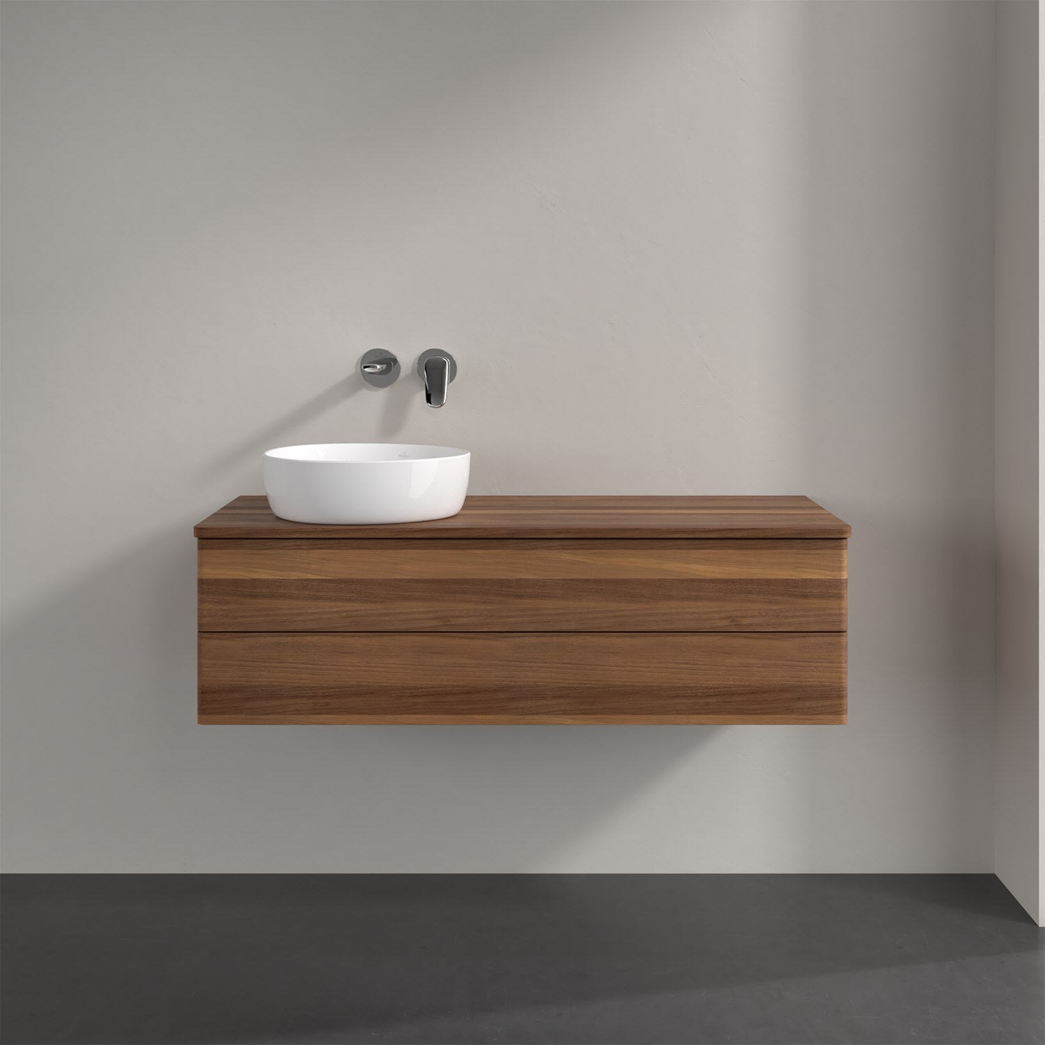 Villeroy & Boch Antao Waschbeckenunterschrank, 120 x 19 cm, 2 Auszüge, Fronten ohne Struktur, ohne Hahnloch, für Waschtisch links