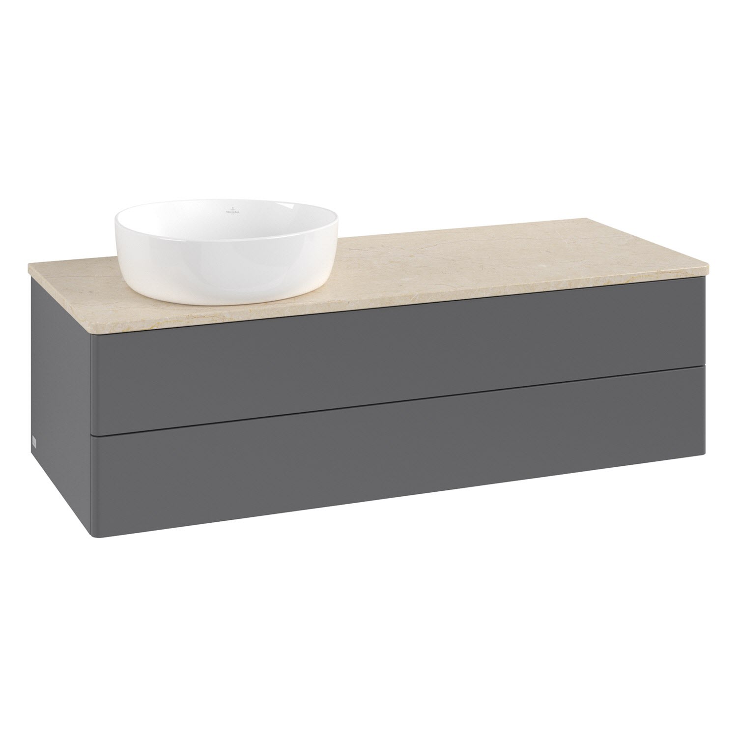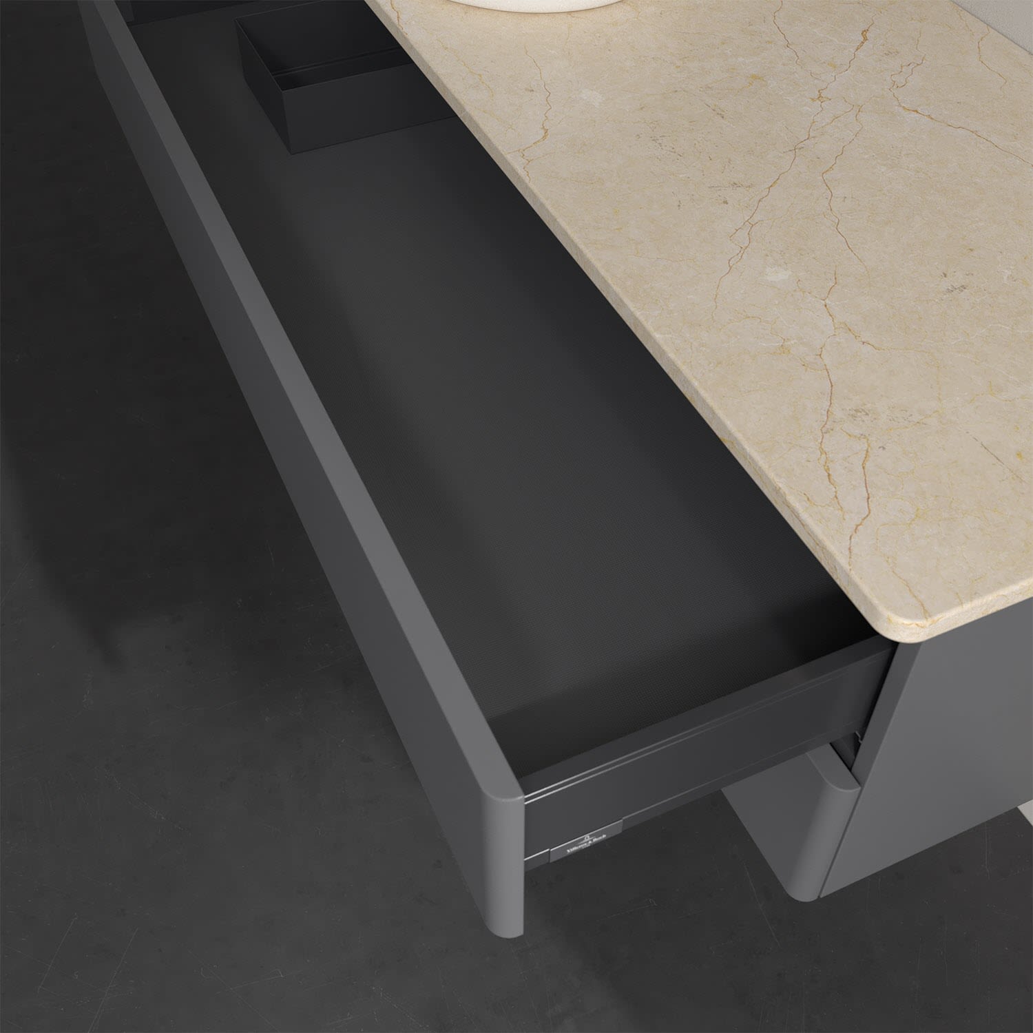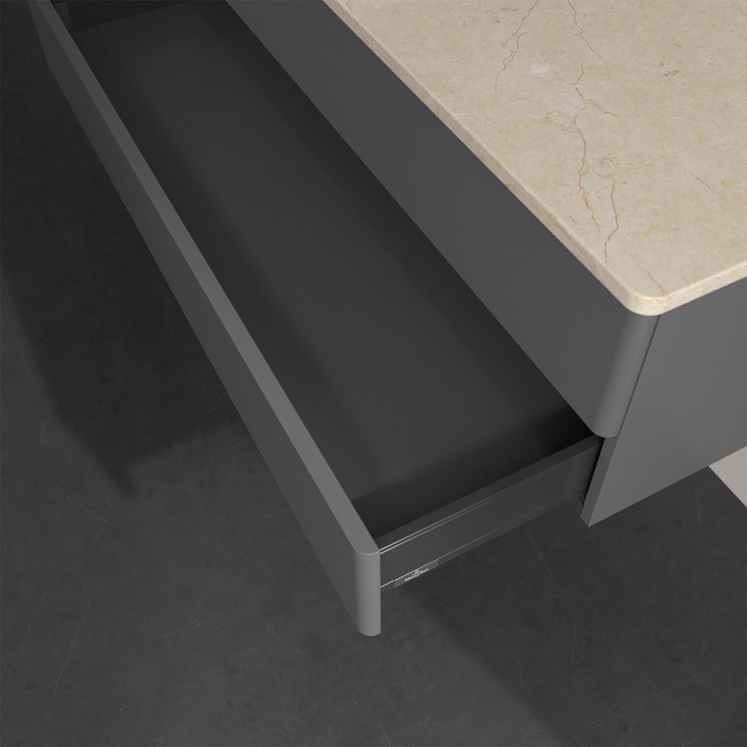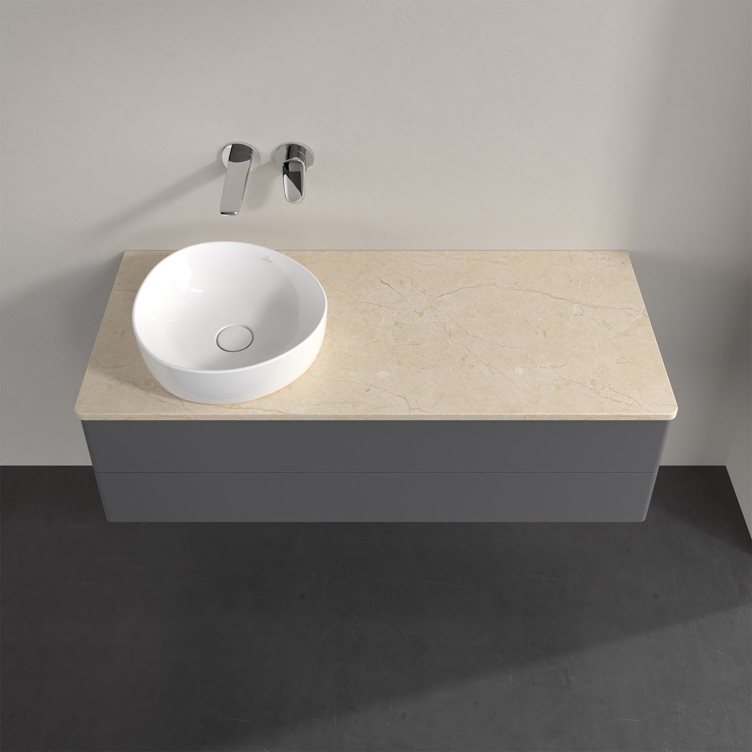 Villeroy & Boch Antao Waschbeckenunterschrank, 120 x 19 cm, 2 Auszüge, Fronten ohne Struktur, ohne Hahnloch, für Waschtisch links