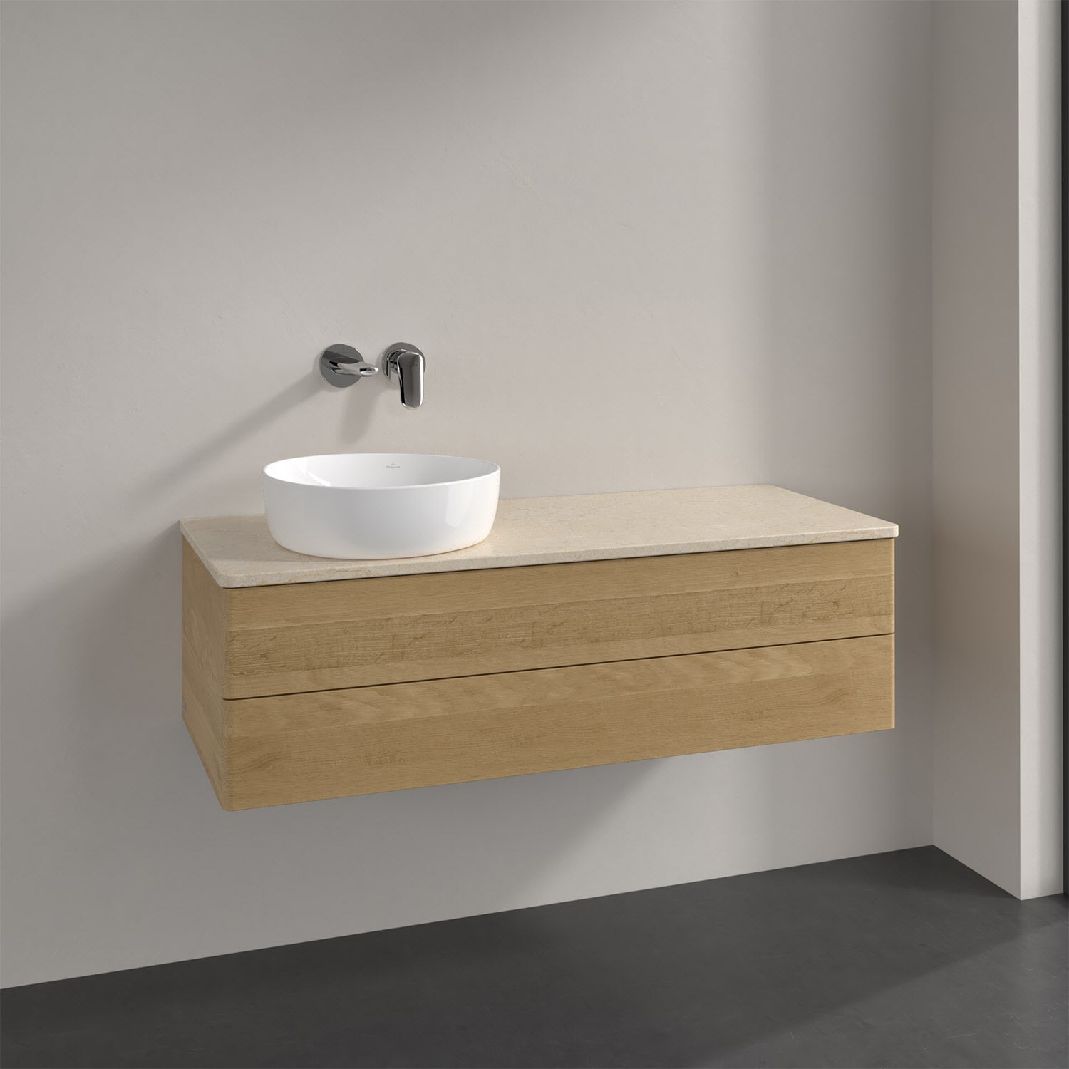 Villeroy & Boch Antao Waschbeckenunterschrank, 120 x 19 cm, 2 Auszüge, Fronten ohne Struktur, ohne Hahnloch, für Waschtisch links