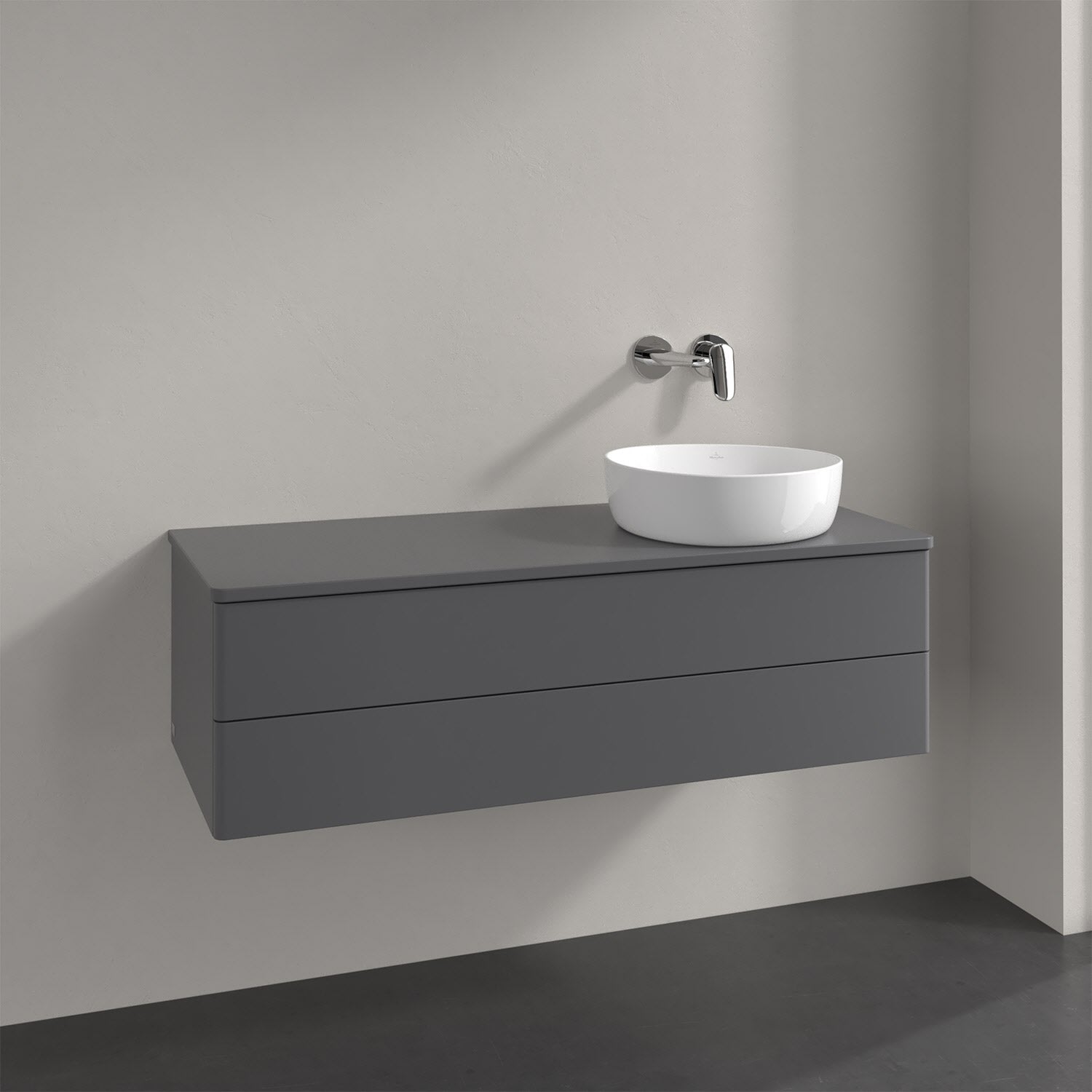 Villeroy & Boch Antao Waschbeckenunterschrank, 120 x 19 cm, 2 Auszüge, Fronten ohne Struktur, ohne Hahnloch, für Waschtisch rechts