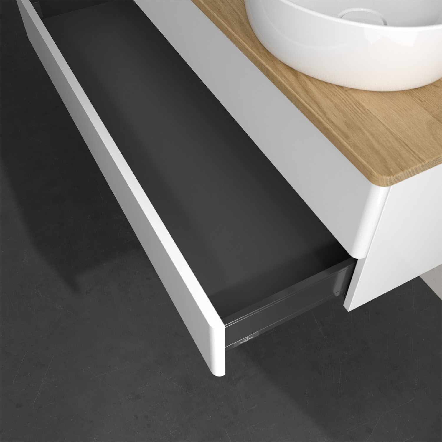 Villeroy & Boch Antao Waschbeckenunterschrank, 120 x 19 cm, 2 Auszüge, Fronten ohne Struktur, ohne Hahnloch, für Waschtisch rechts