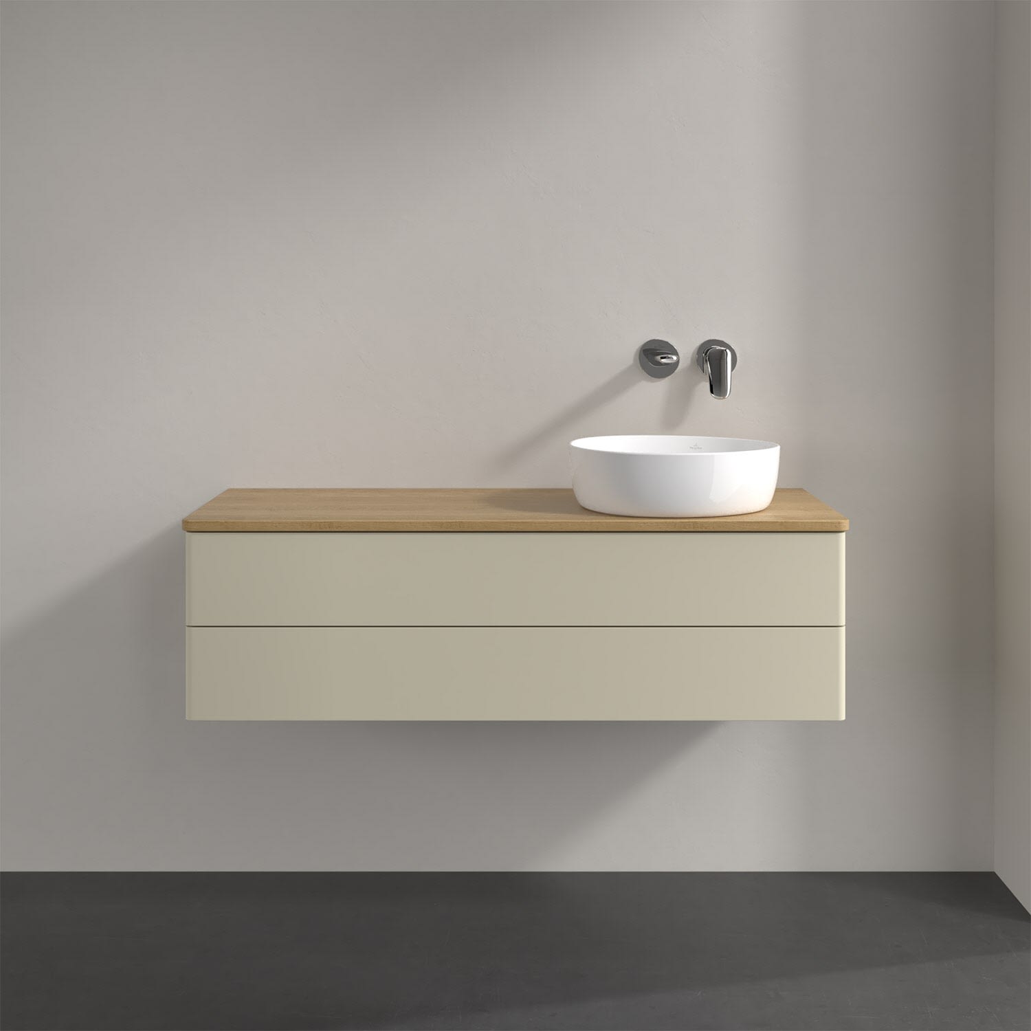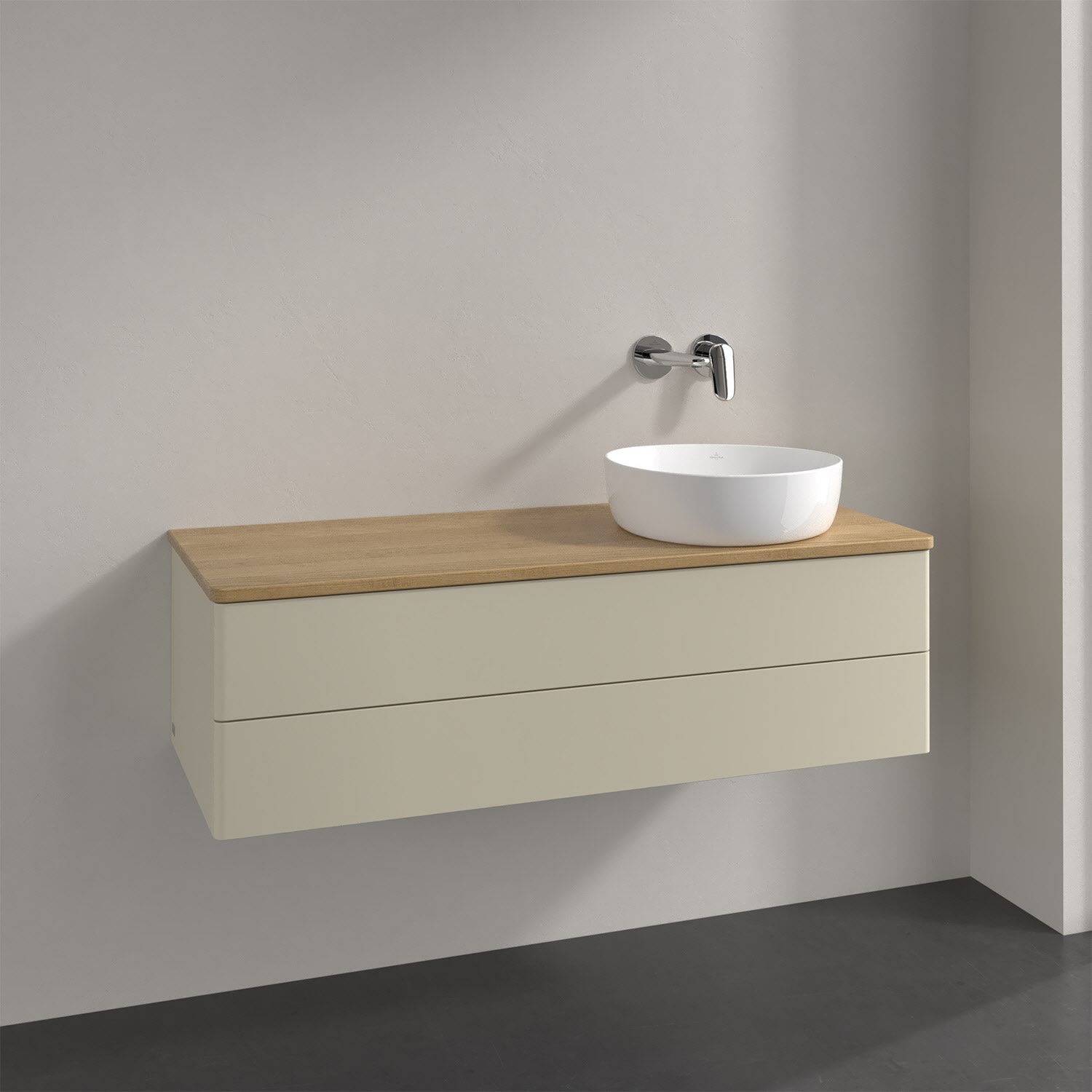 Villeroy & Boch Antao Waschbeckenunterschrank, 120 x 19 cm, 2 Auszüge, Fronten ohne Struktur, ohne Hahnloch, für Waschtisch rechts