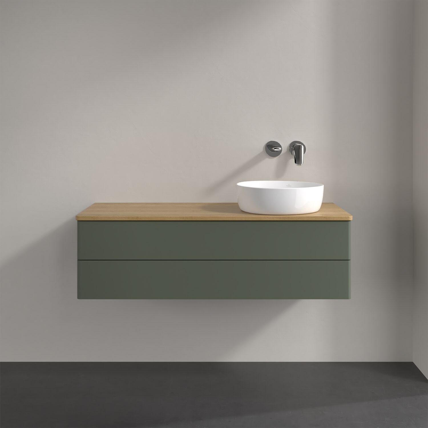 Villeroy & Boch Antao Waschbeckenunterschrank, 120 x 19 cm, 2 Auszüge, Fronten ohne Struktur, ohne Hahnloch, für Waschtisch rechts
