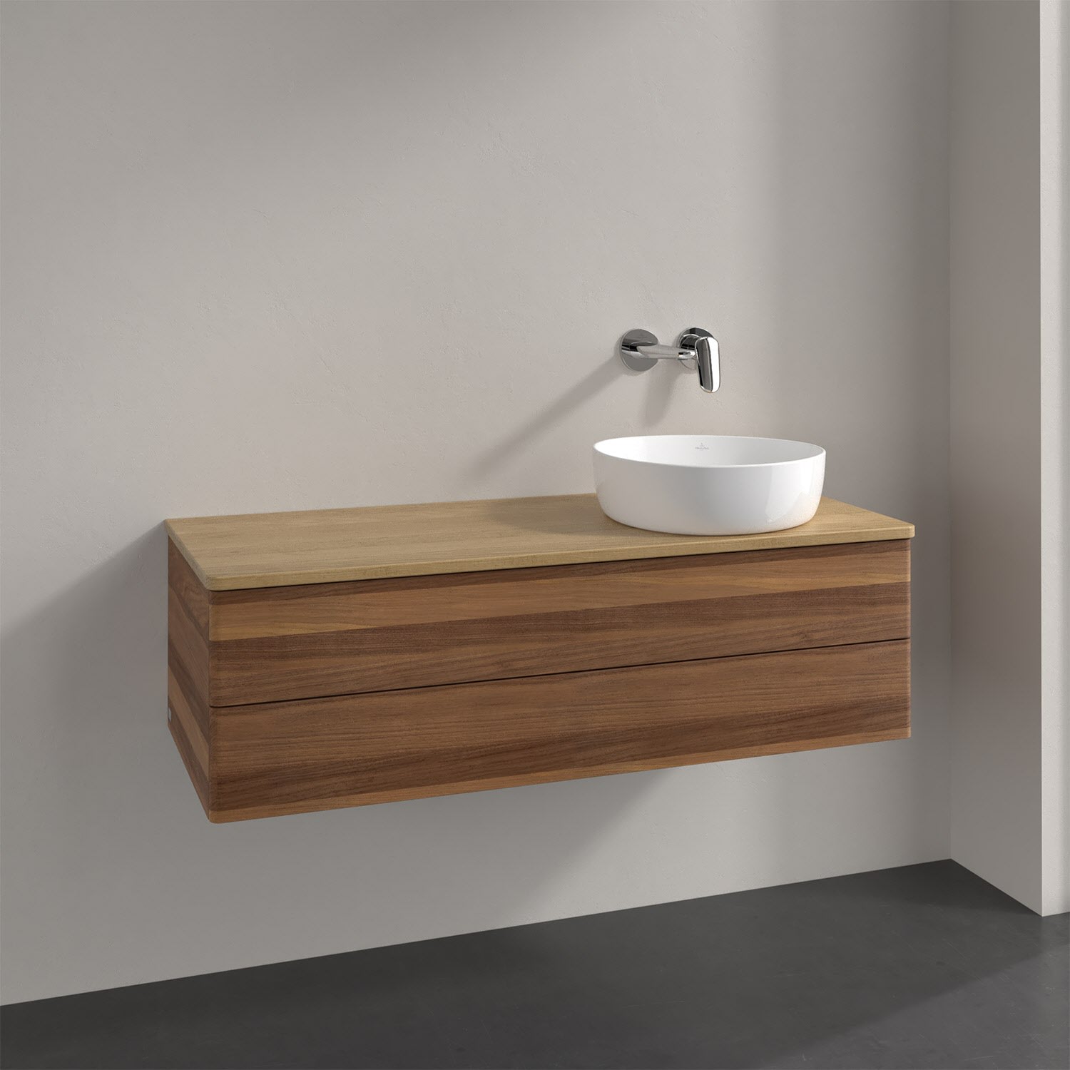 Villeroy & Boch Antao Waschbeckenunterschrank, 120 x 19 cm, 2 Auszüge, Fronten ohne Struktur, ohne Hahnloch, für Waschtisch rechts