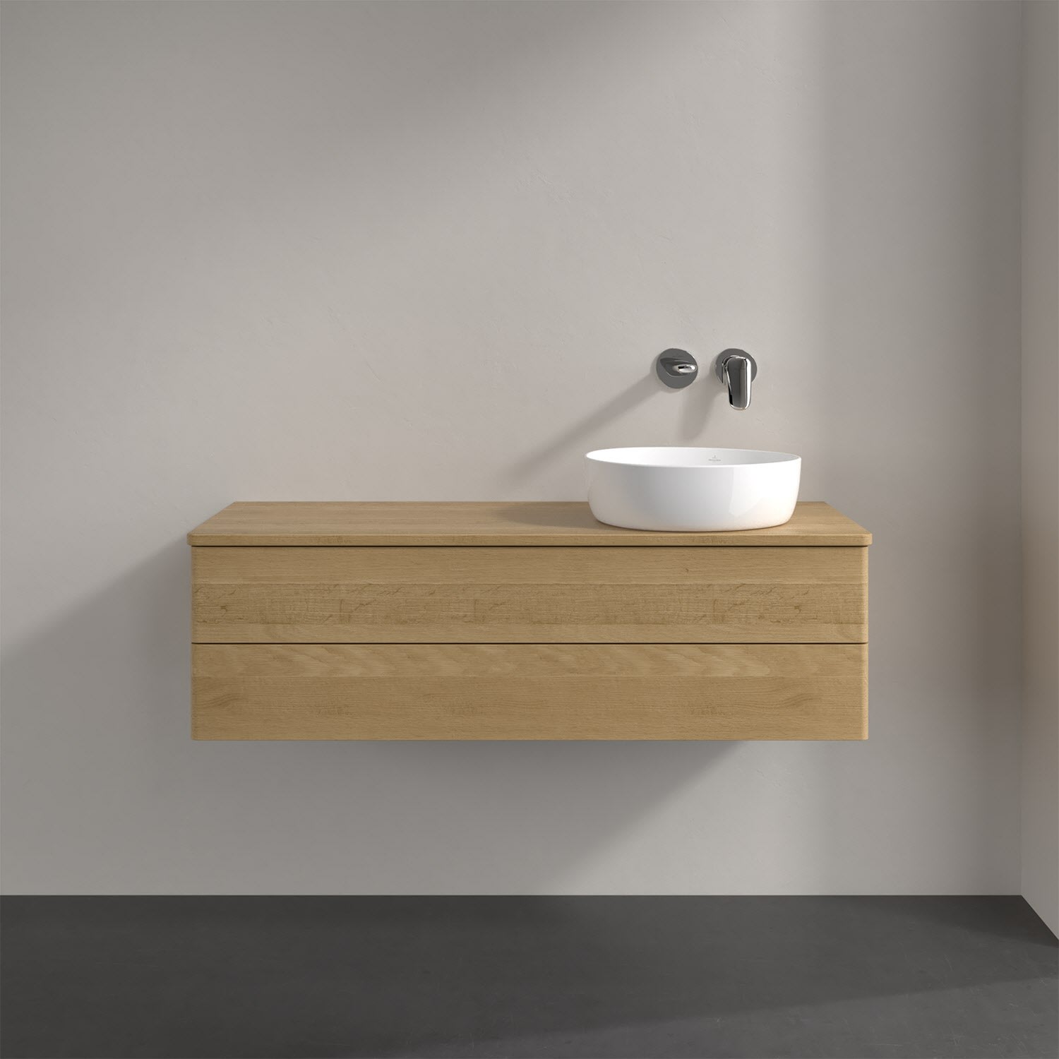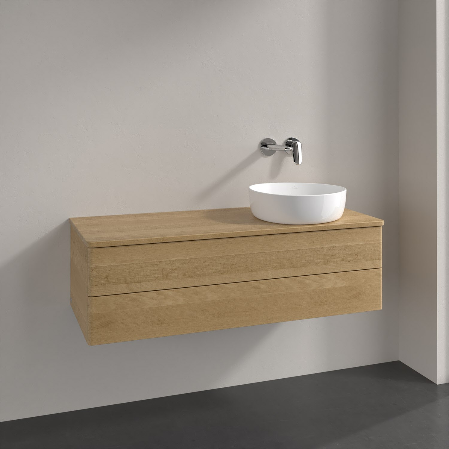 Villeroy & Boch Antao Waschbeckenunterschrank, 120 x 19 cm, 2 Auszüge, Fronten ohne Struktur, ohne Hahnloch, für Waschtisch rechts