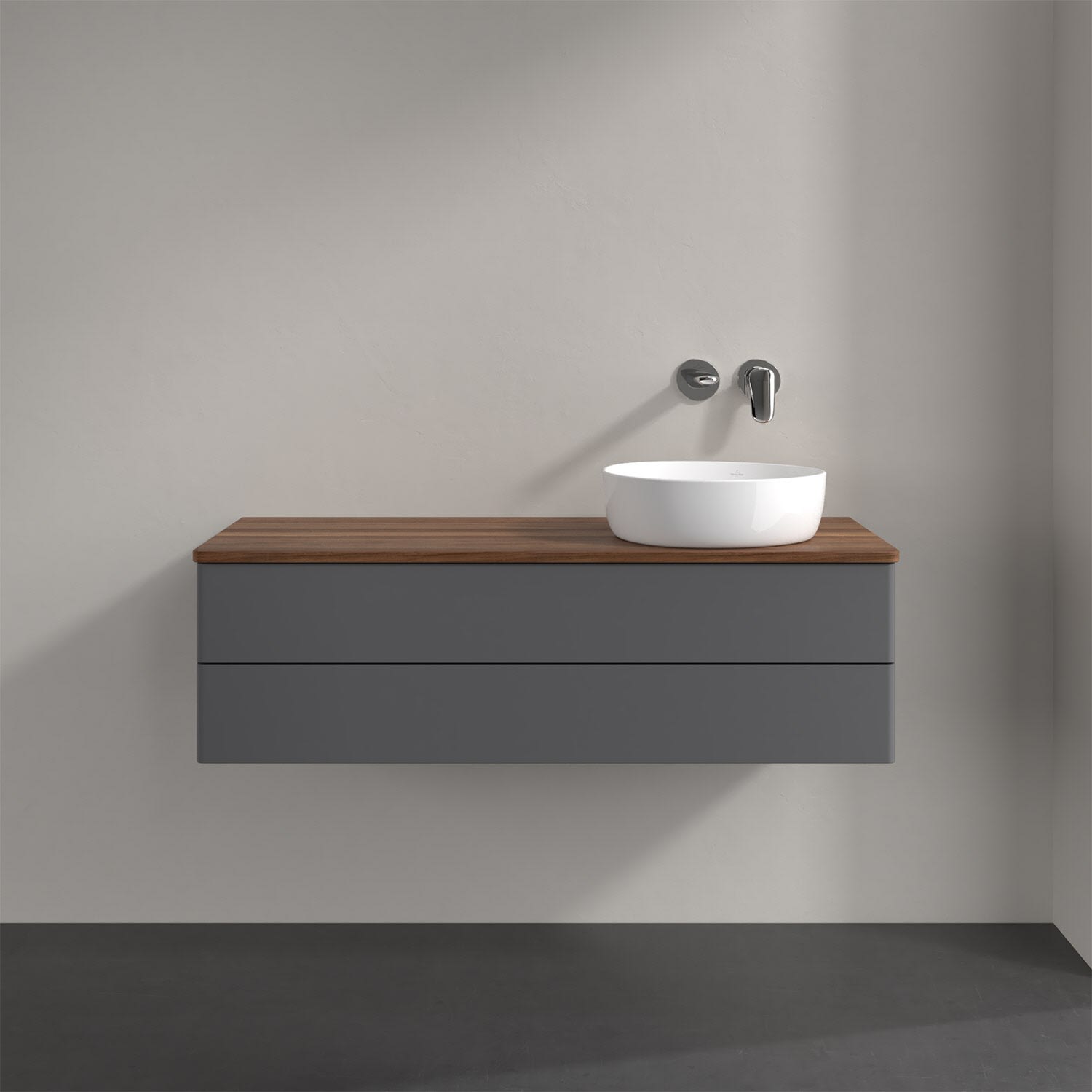 Villeroy & Boch Antao Waschbeckenunterschrank, 120 x 19 cm, 2 Auszüge, Fronten ohne Struktur, ohne Hahnloch, für Waschtisch rechts