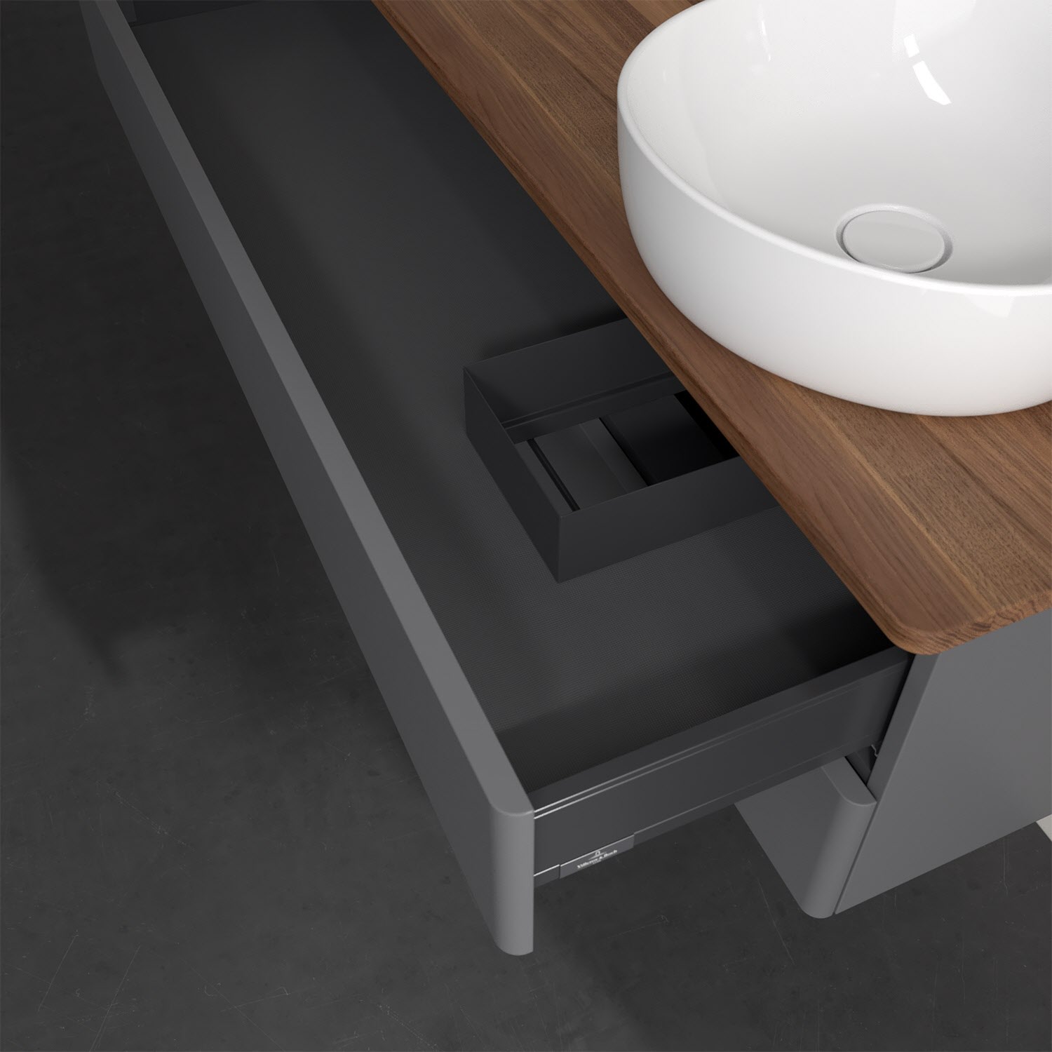 - kein Umfallen oder Verrutschen von Pflegeprodukten in den Schubladen dank rutschhemmendem Boden