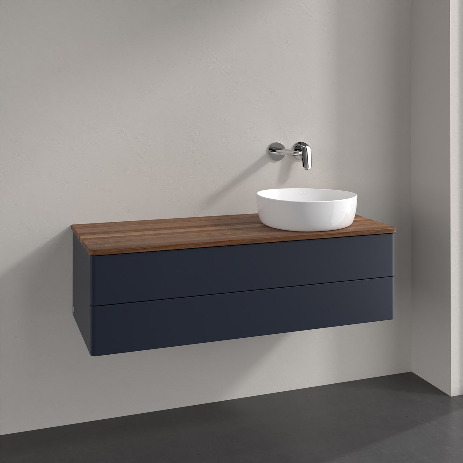 Villeroy & Boch Antao Waschbeckenunterschrank, 120 x 19 cm, 2 Auszüge, Fronten ohne Struktur, ohne Hahnloch, für Waschtisch rechts