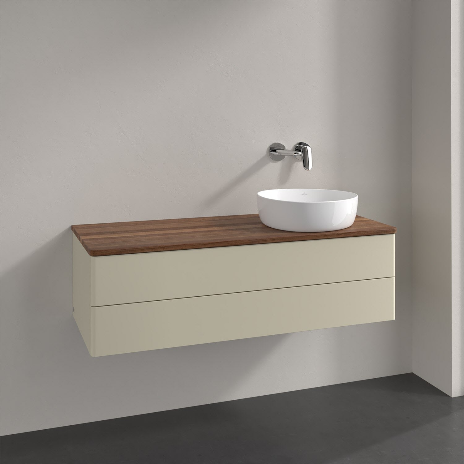 Villeroy & Boch Antao Waschbeckenunterschrank, 120 x 19 cm, 2 Auszüge, Fronten ohne Struktur, ohne Hahnloch, für Waschtisch rechts
