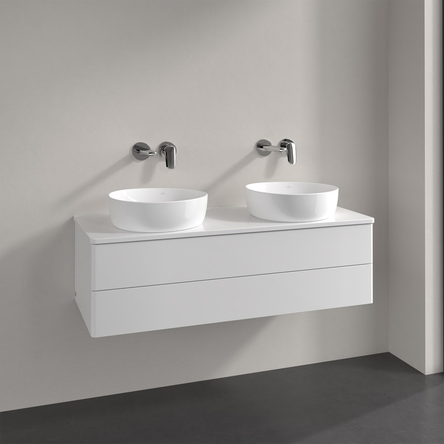 Villeroy & Boch Antao Waschbeckenunterschrank, 120 x 19 cm, 2 Auszüge, Fronten ohne Struktur, ohne Hahnloch, für Waschtisch links und rechts
