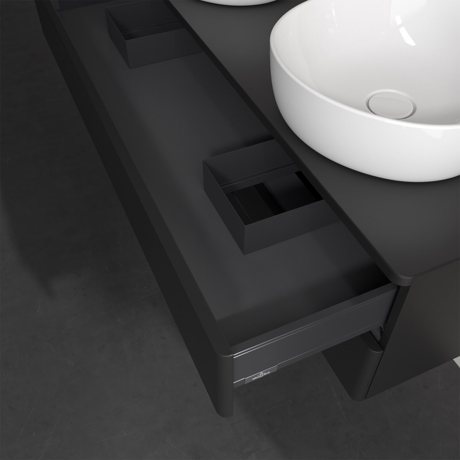 Villeroy & Boch Antao Waschbeckenunterschrank, 120 x 19 cm, 2 Auszüge, Fronten ohne Struktur, ohne Hahnloch, für Waschtisch links und rechts