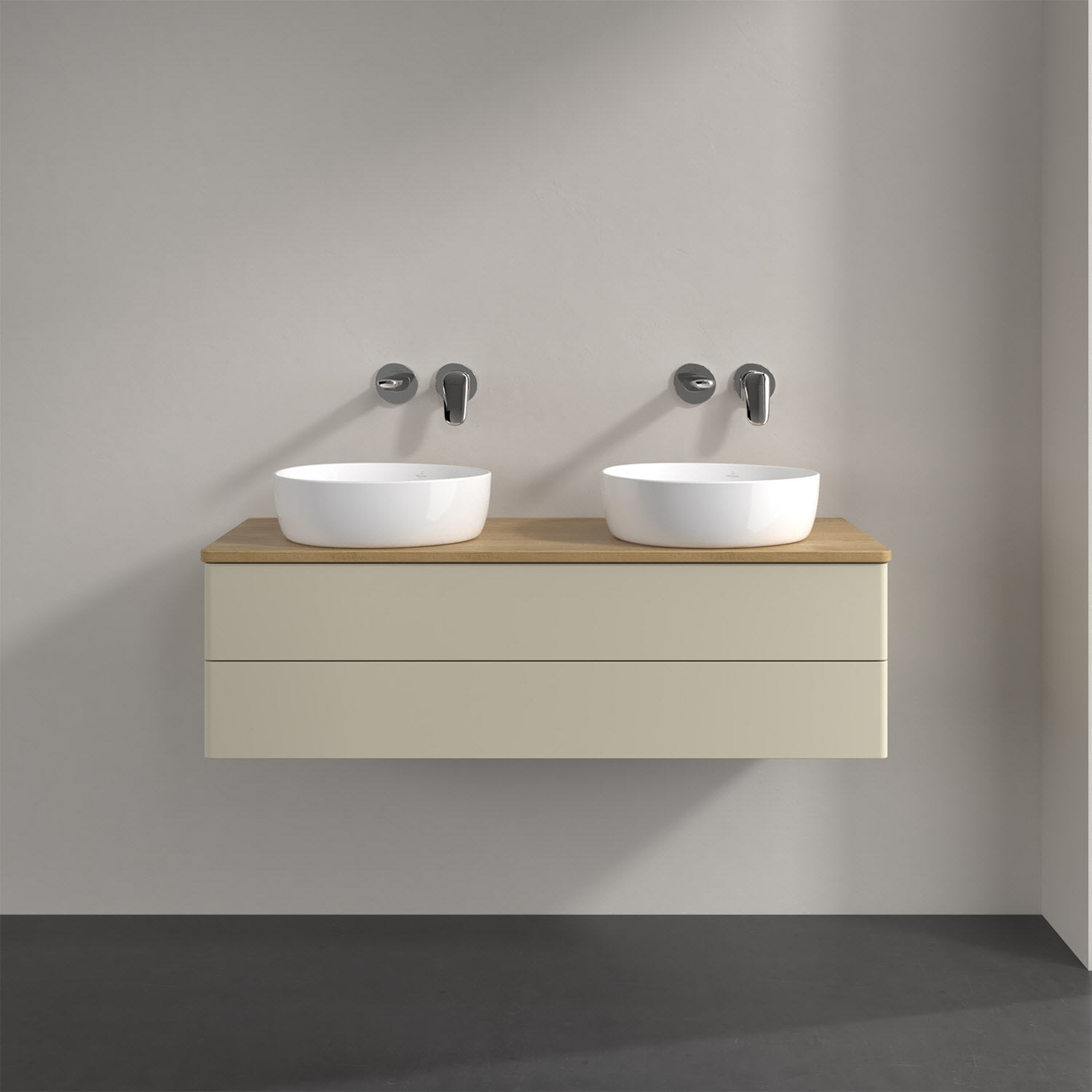 Villeroy & Boch Antao Waschbeckenunterschrank, 120 x 19 cm, 2 Auszüge, Fronten ohne Struktur, ohne Hahnloch, für Waschtisch links und rechts