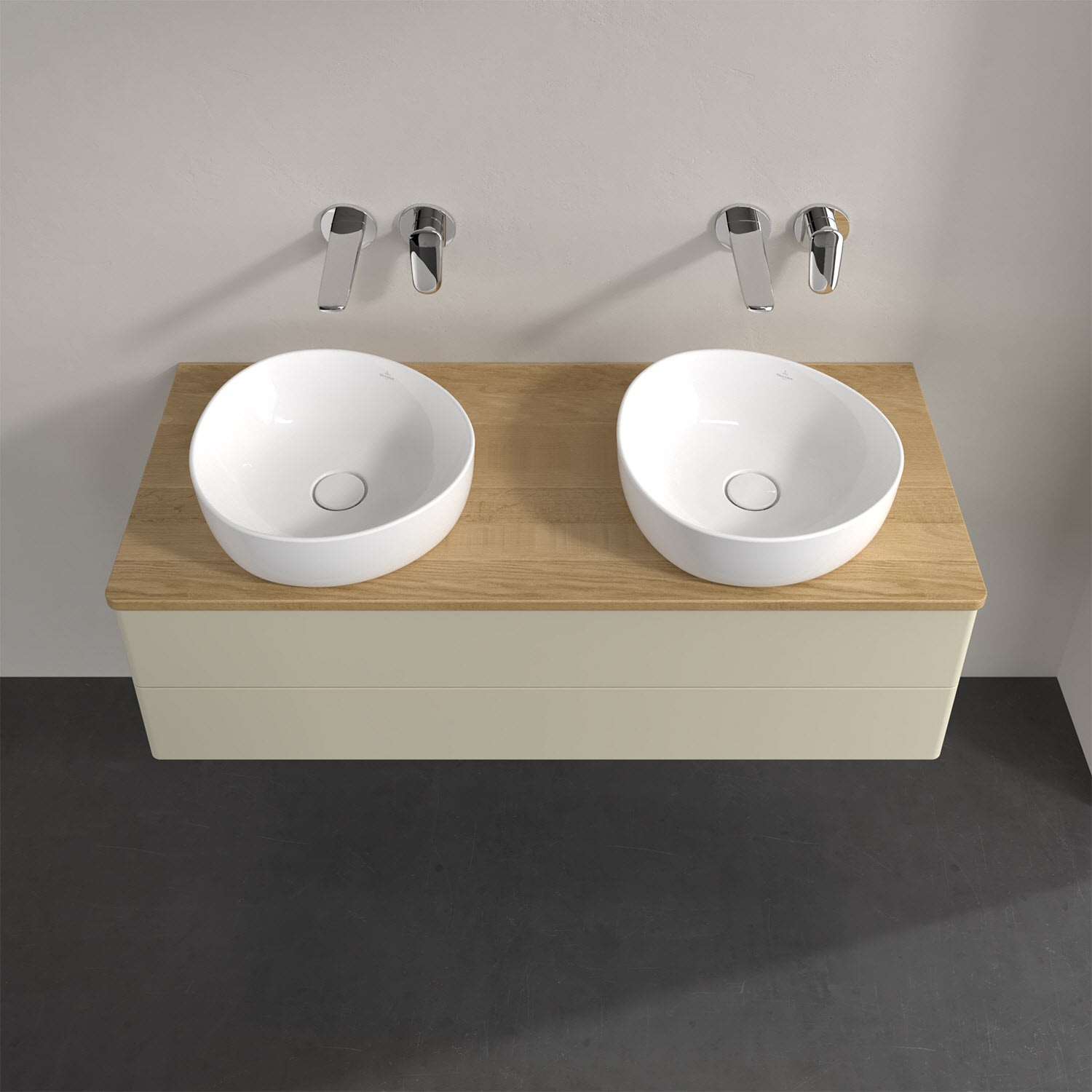Für diesen Waschbeckenunterschrank stehen Ihnen Aufsatzwaschtische aus verschiedenen Serien zur Verfügung (siehe "Passliste" unter Downloads). Ein ausgewähltes Beispiel finden Sie im Zubehör. Den Waschtisch bitte separat mitbestellen.