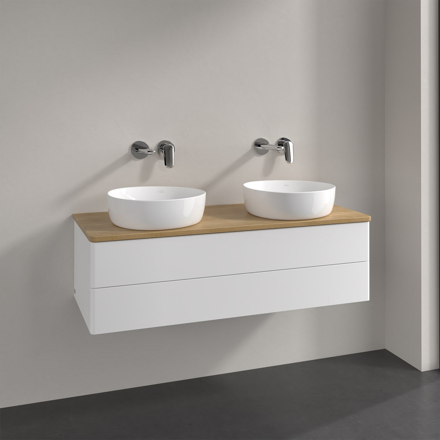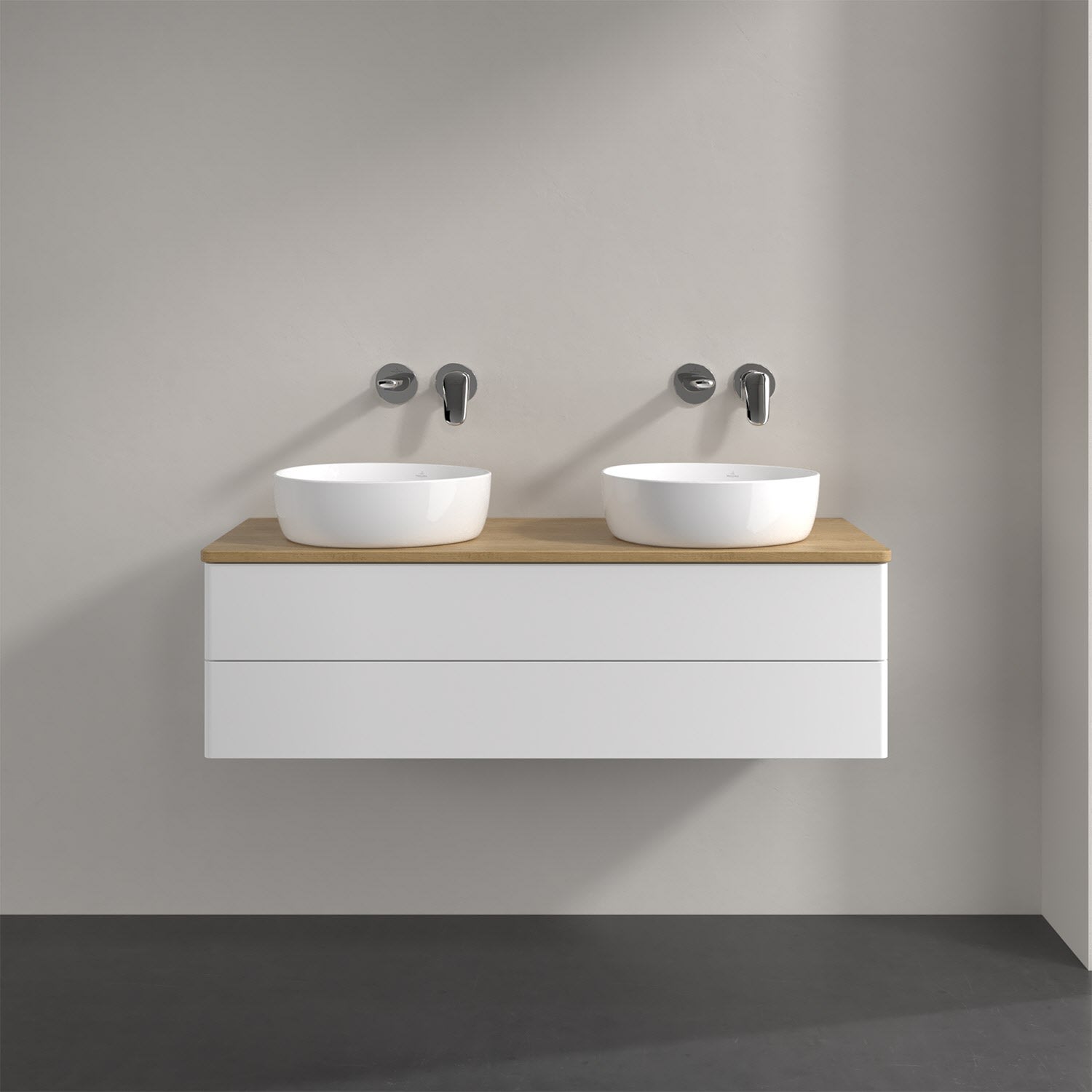 Villeroy & Boch Antao Waschbeckenunterschrank, 120 x 19 cm, 2 Auszüge, Fronten ohne Struktur, ohne Hahnloch, für Waschtisch links und rechts