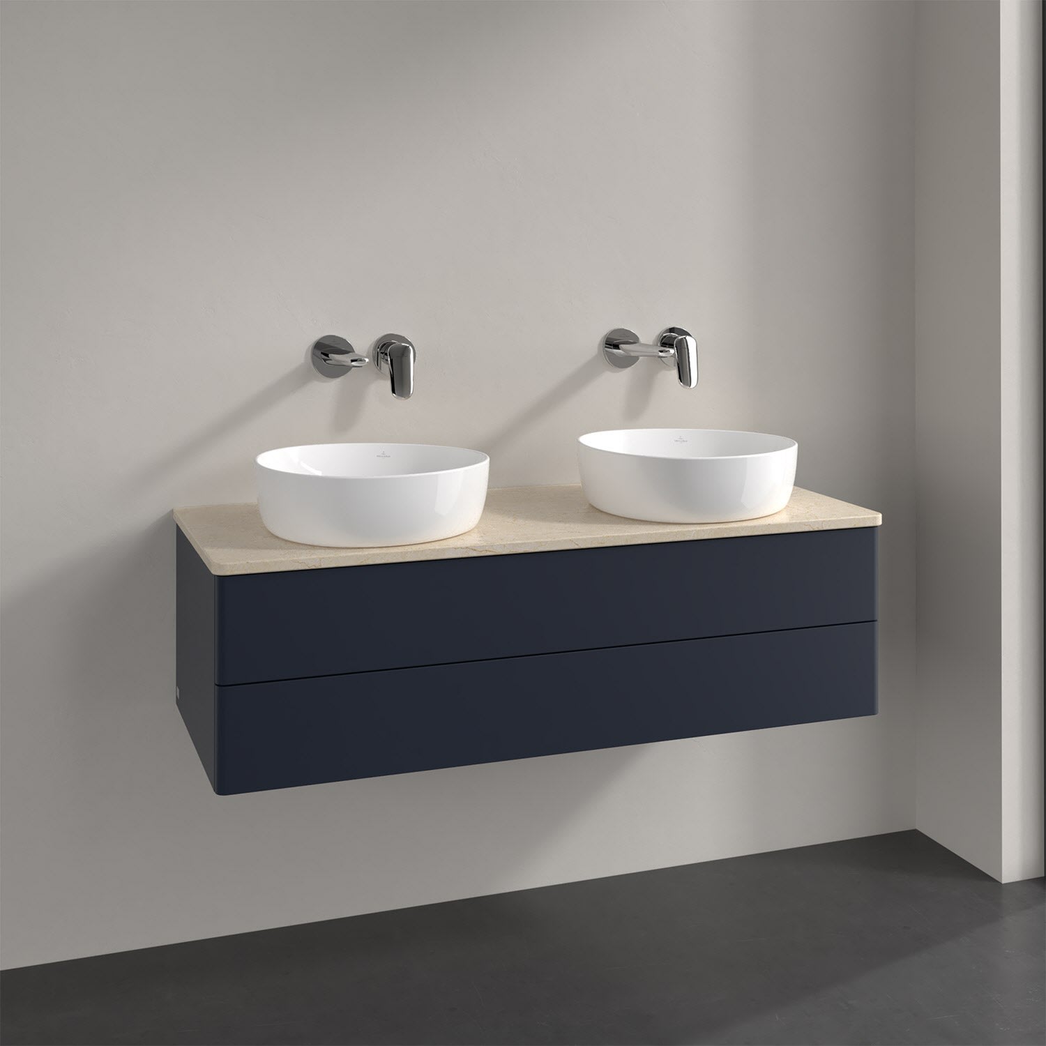 Villeroy & Boch Antao Waschbeckenunterschrank, 120 x 19 cm, 2 Auszüge, Fronten ohne Struktur, ohne Hahnloch, für Waschtisch links und rechts