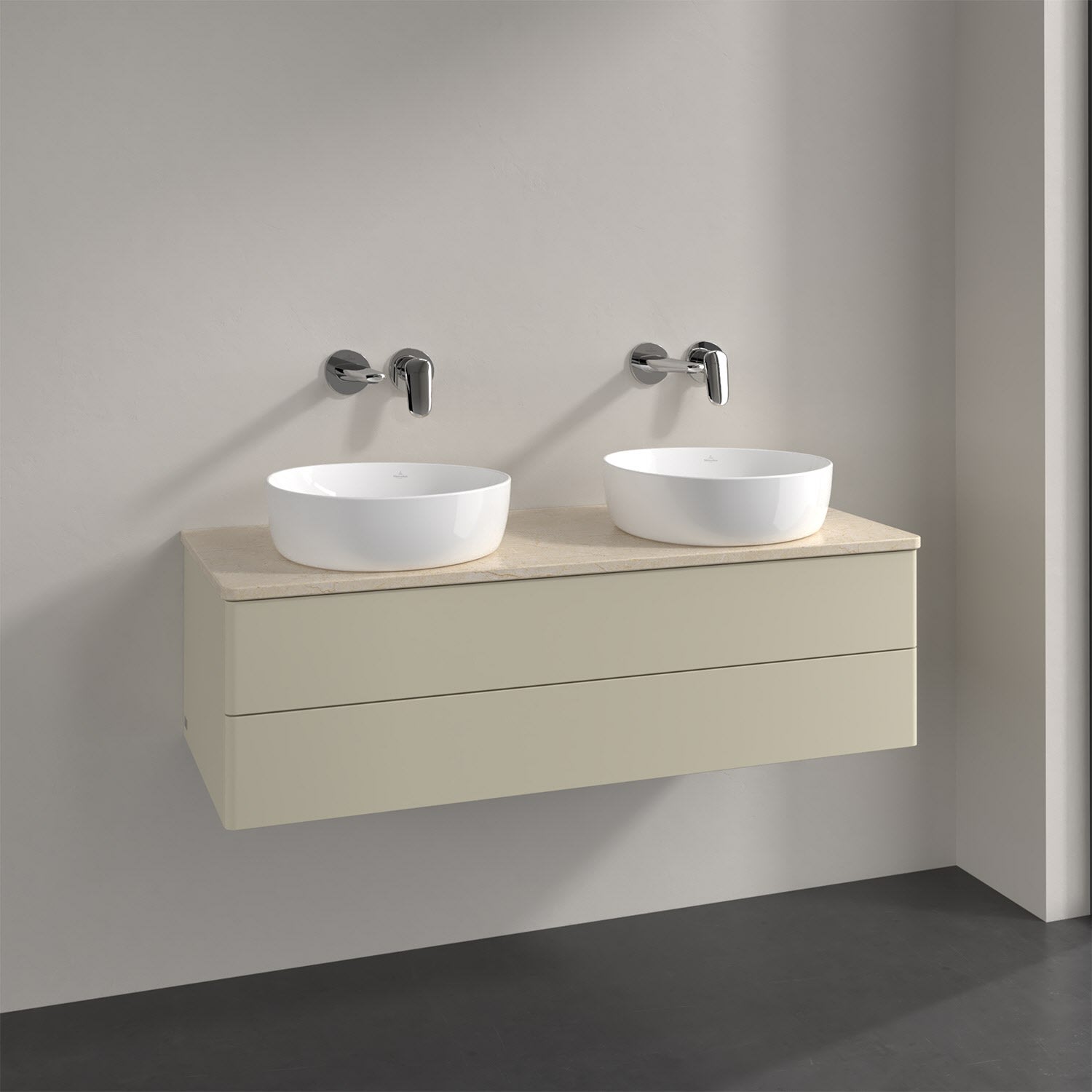 Villeroy & Boch Antao Waschbeckenunterschrank, 120 x 19 cm, 2 Auszüge, Fronten ohne Struktur, ohne Hahnloch, für Waschtisch links und rechts