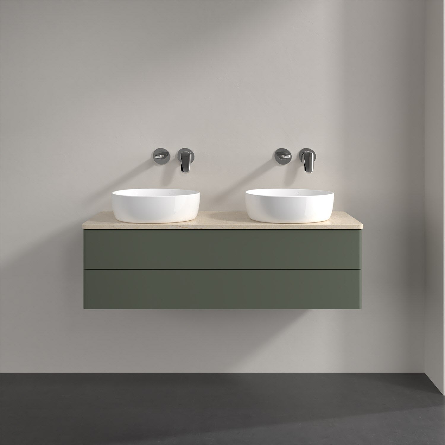 Villeroy & Boch Antao Waschbeckenunterschrank, 120 x 19 cm, 2 Auszüge, Fronten ohne Struktur, ohne Hahnloch, für Waschtisch links und rechts