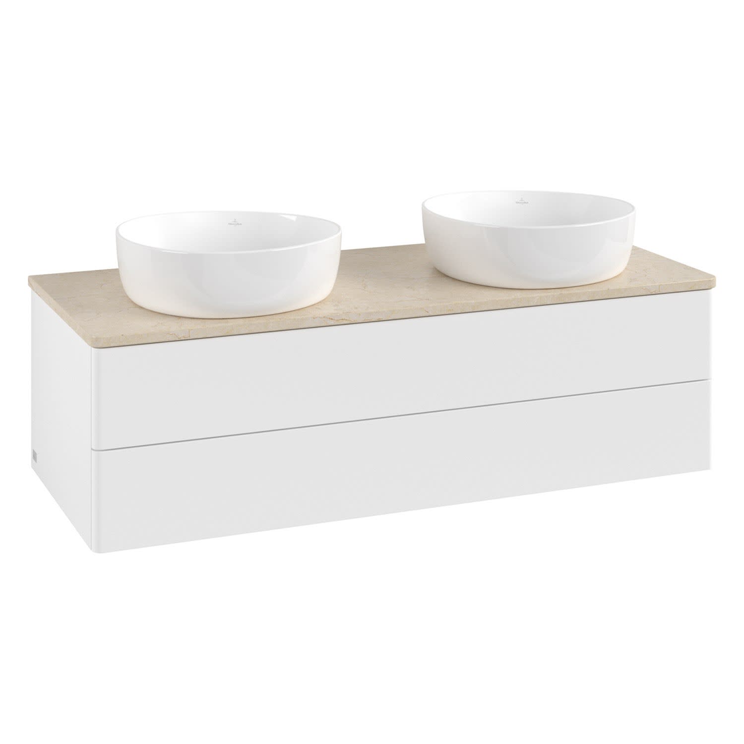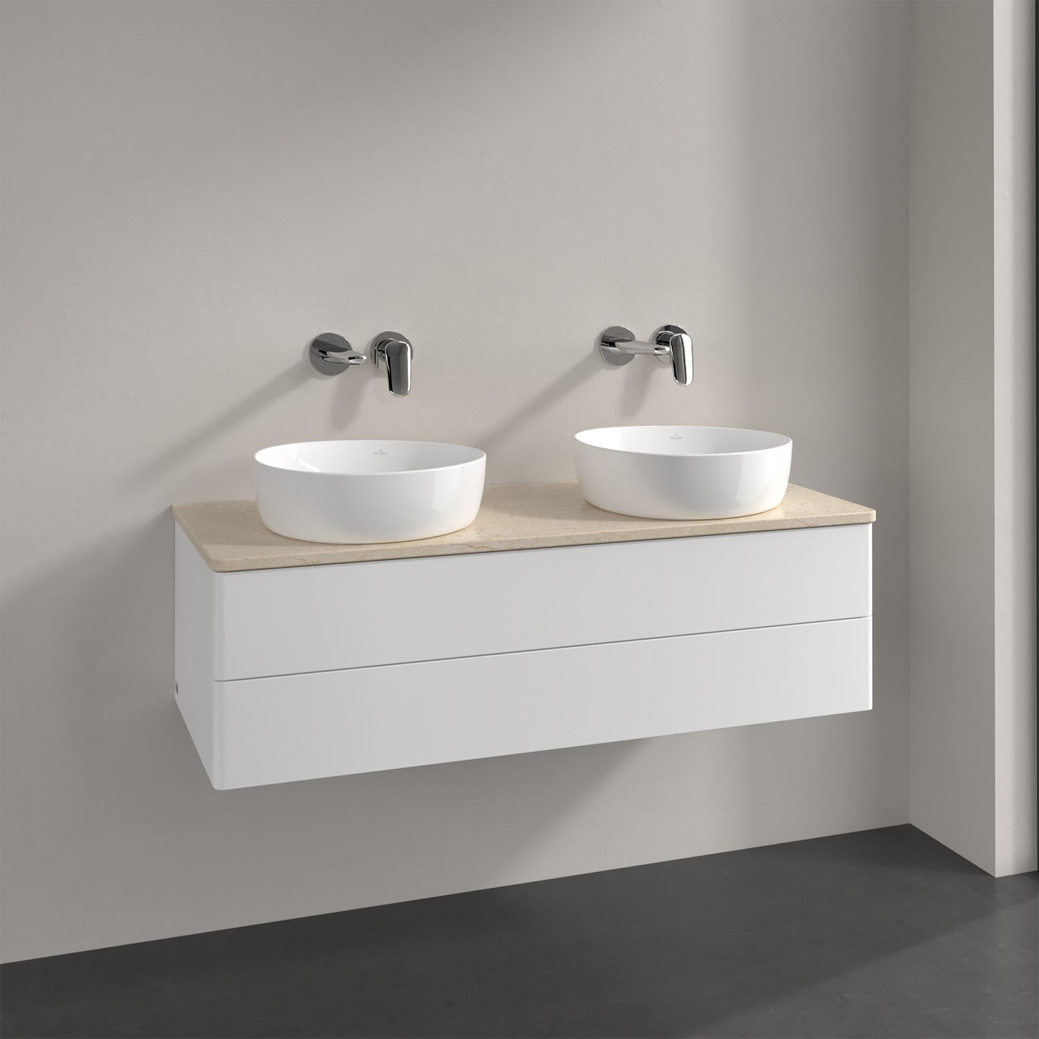 Villeroy & Boch Antao Waschbeckenunterschrank, 120 x 19 cm, 2 Auszüge, Fronten ohne Struktur, ohne Hahnloch, für Waschtisch links und rechts