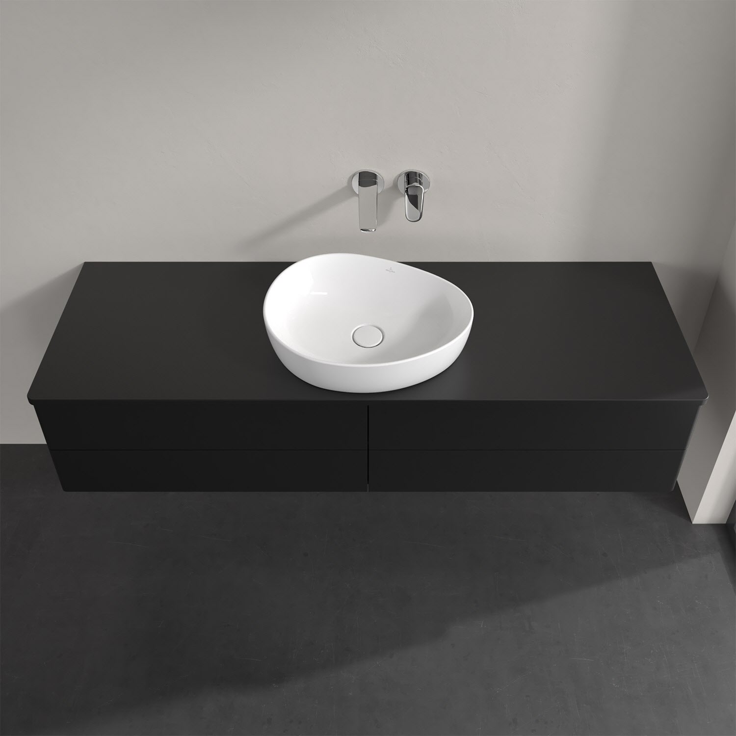 Villeroy & Boch Antao Waschbeckenunterschrank, 160 x 19 cm, 4 Auszüge, Fronten ohne Struktur, ohne Hahnloch, für Waschtisch mittig