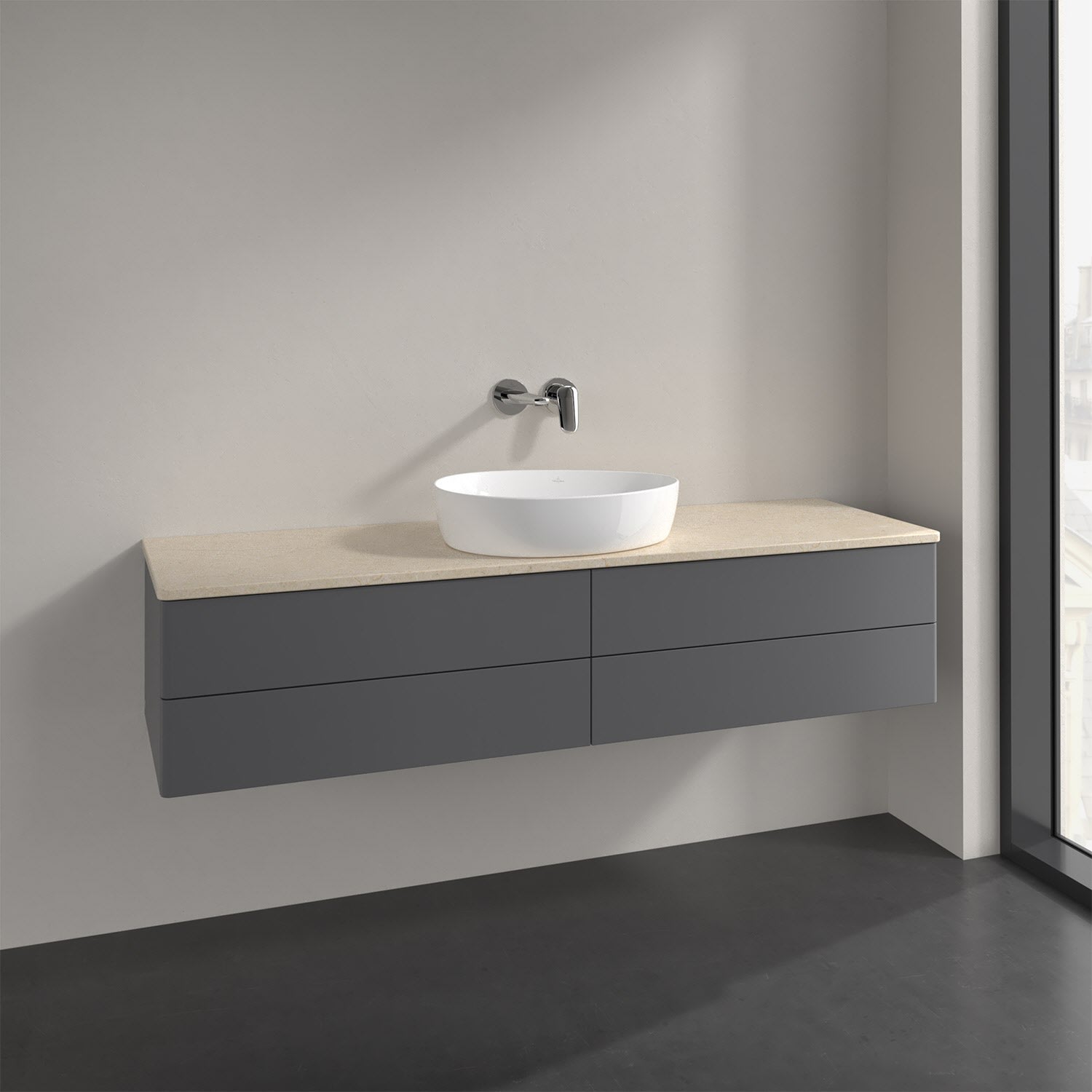 Villeroy & Boch Antao Waschbeckenunterschrank, 160 x 19 cm, 4 Auszüge, Fronten ohne Struktur, ohne Hahnloch, für Waschtisch mittig