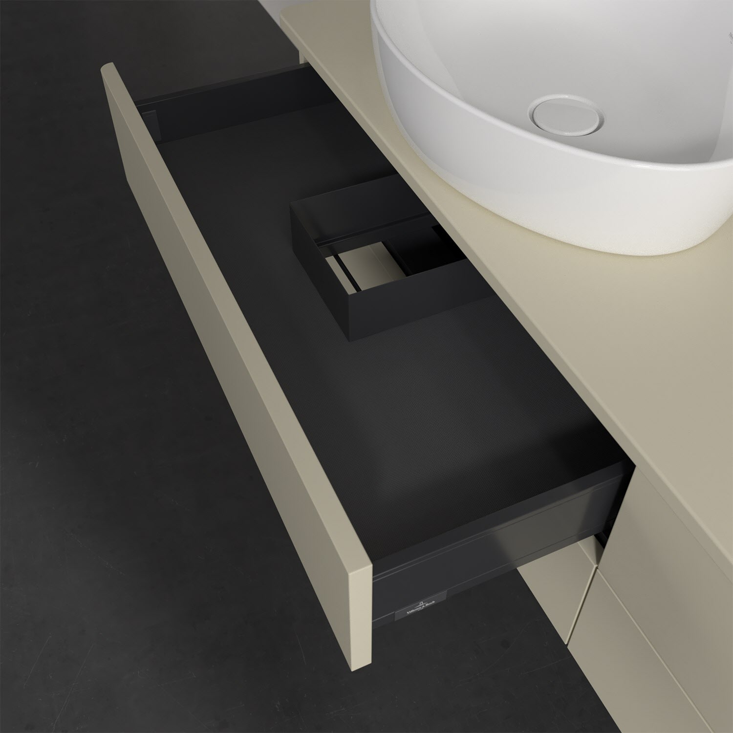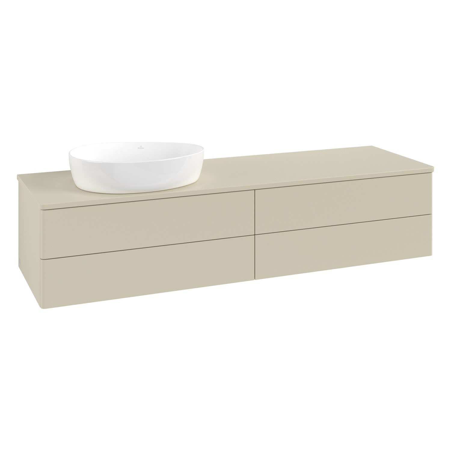 Villeroy & Boch Antao Waschbeckenunterschrank, 160 x 19 cm, 4 Auszüge, Fronten ohne Struktur, ohne Hahnloch, für Waschtisch links