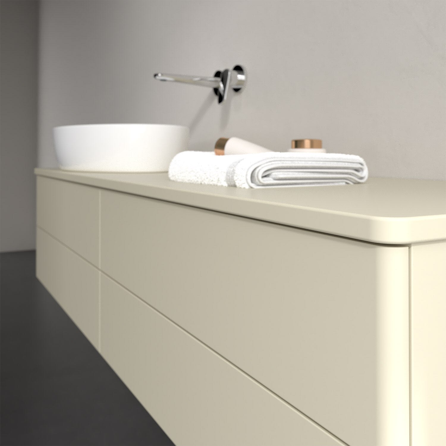 Für diesen Waschbeckenunterschrank stehen Ihnen Aufsatzwaschtische aus verschiedenen Serien zur Verfügung (siehe "Passliste" unter Downloads). Ein ausgewähltes Beispiel finden Sie im Zubehör. Den Waschtisch bitte separat mitbestellen.