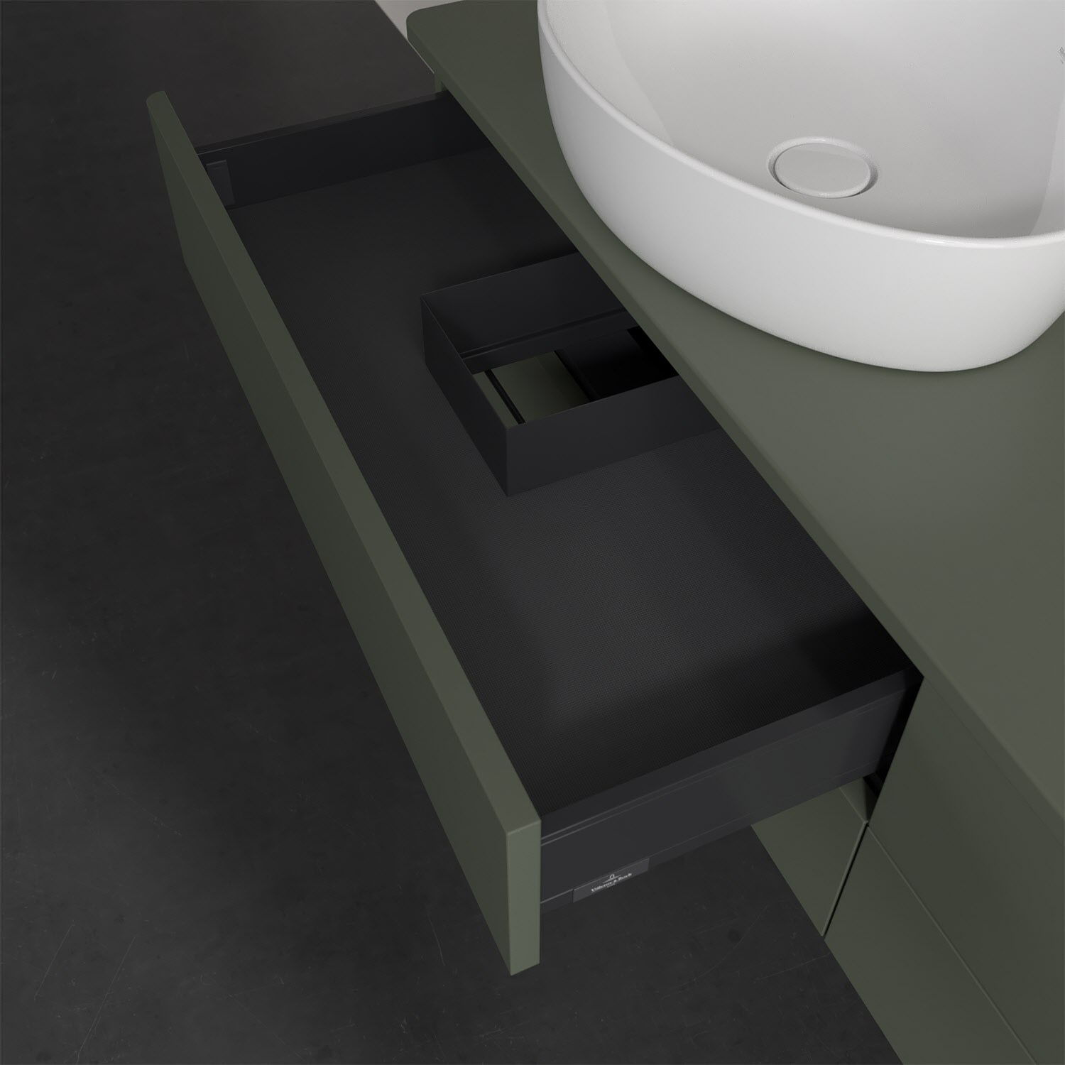 Villeroy & Boch Antao Waschbeckenunterschrank, 160 x 19 cm, 4 Auszüge, Fronten ohne Struktur, ohne Hahnloch, für Waschtisch links