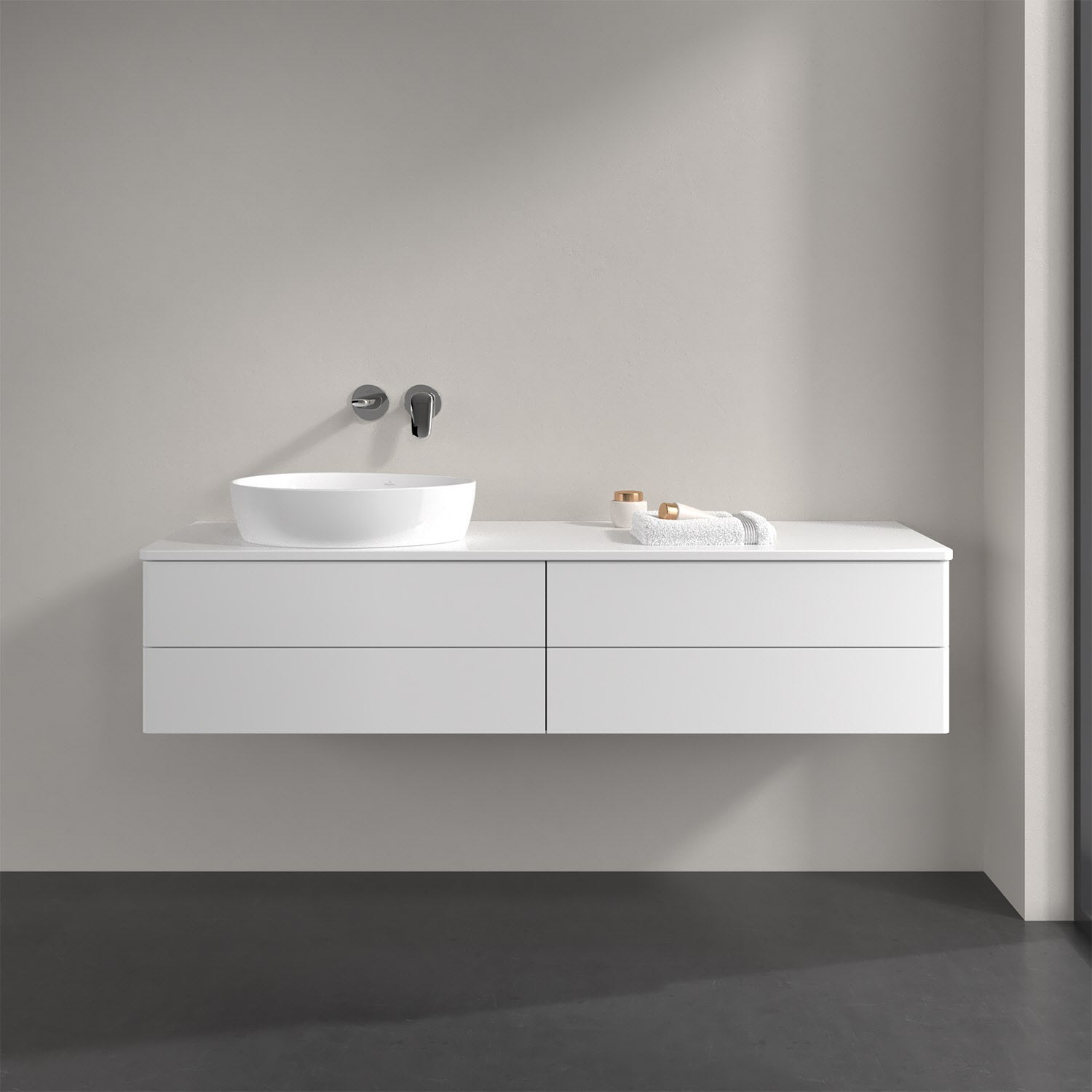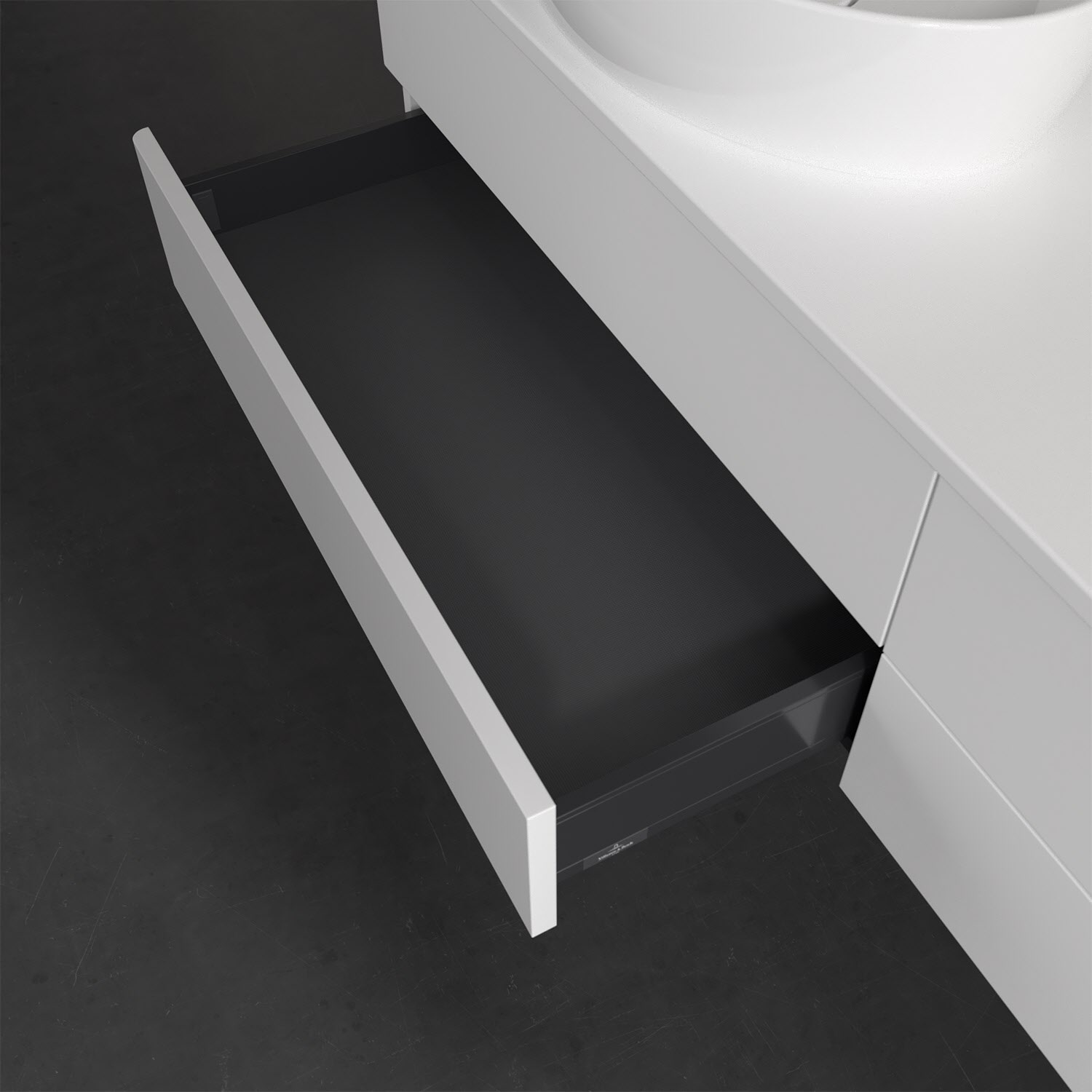Villeroy & Boch Antao Waschbeckenunterschrank, 160 x 19 cm, 4 Auszüge, Fronten ohne Struktur, ohne Hahnloch, für Waschtisch links