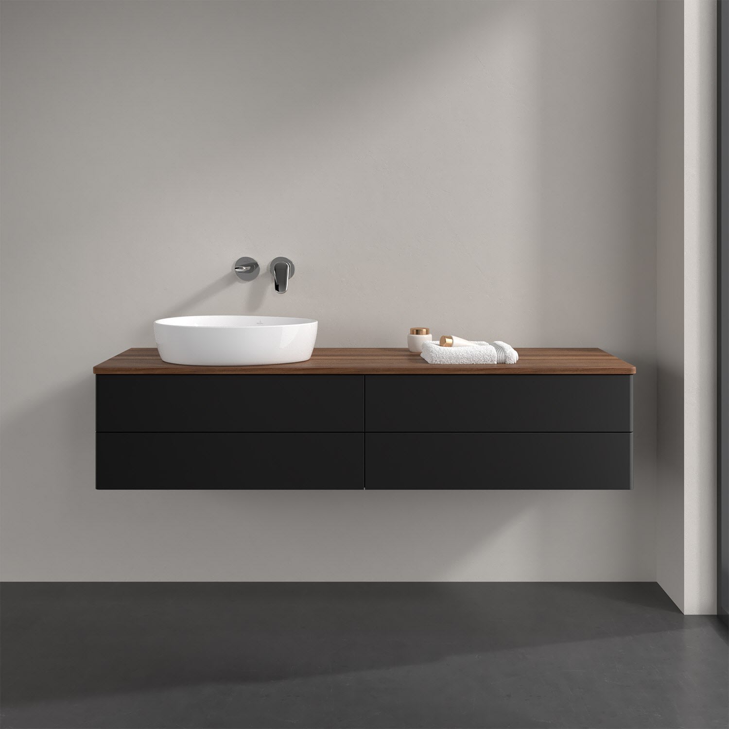 Villeroy & Boch Antao Waschbeckenunterschrank, 160 x 19 cm, 4 Auszüge, Fronten ohne Struktur, ohne Hahnloch, für Waschtisch links