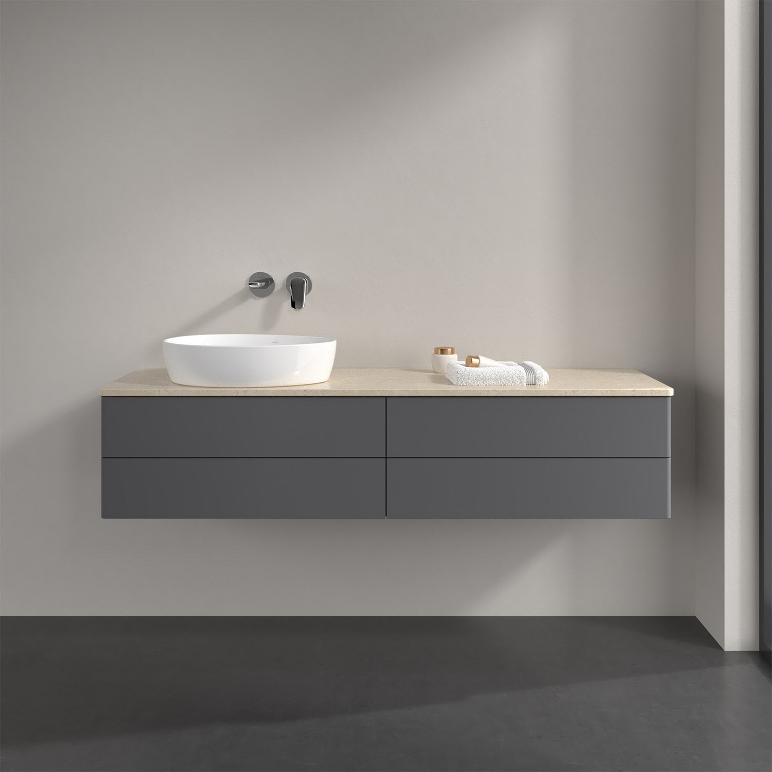 Villeroy & Boch Antao Waschbeckenunterschrank, 160 x 19 cm, 4 Auszüge, Fronten ohne Struktur, ohne Hahnloch, für Waschtisch links