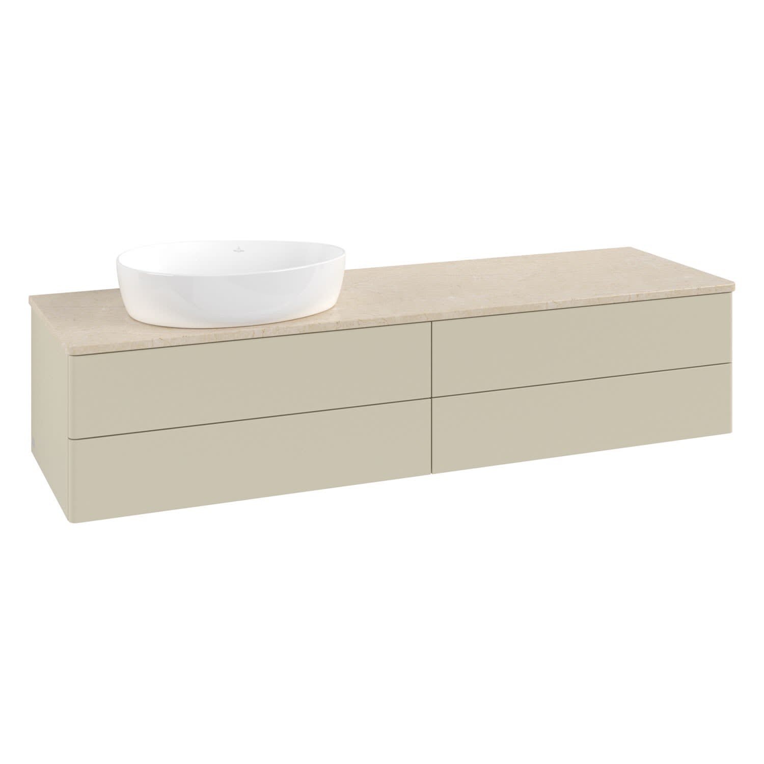 Villeroy & Boch Antao Waschbeckenunterschrank, 160 x 19 cm, 4 Auszüge, Fronten ohne Struktur, ohne Hahnloch, für Waschtisch links