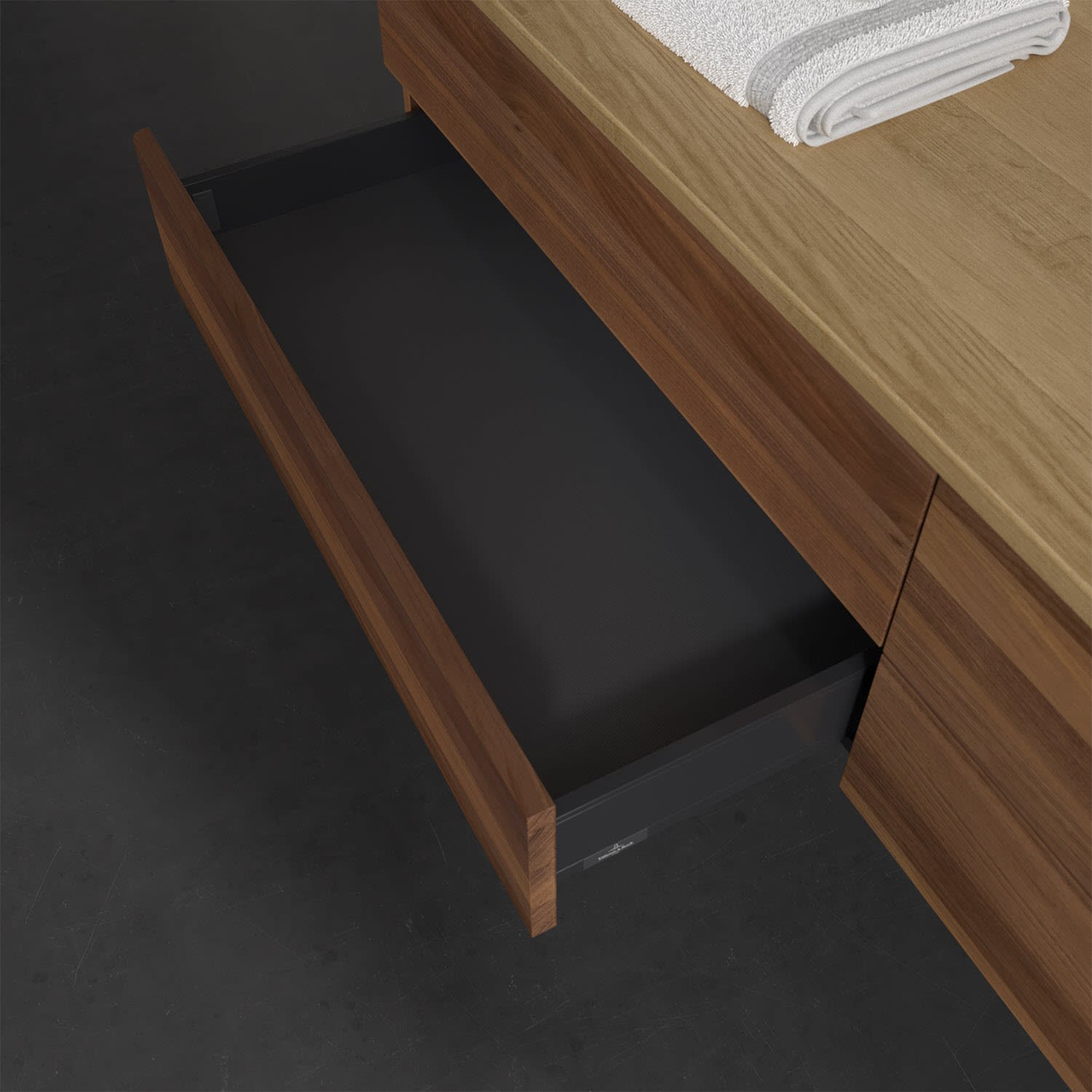 Villeroy & Boch Antao Waschbeckenunterschrank, 160 x 19 cm, 4 Auszüge, Fronten ohne Struktur, ohne Hahnloch, für Waschtisch rechts
