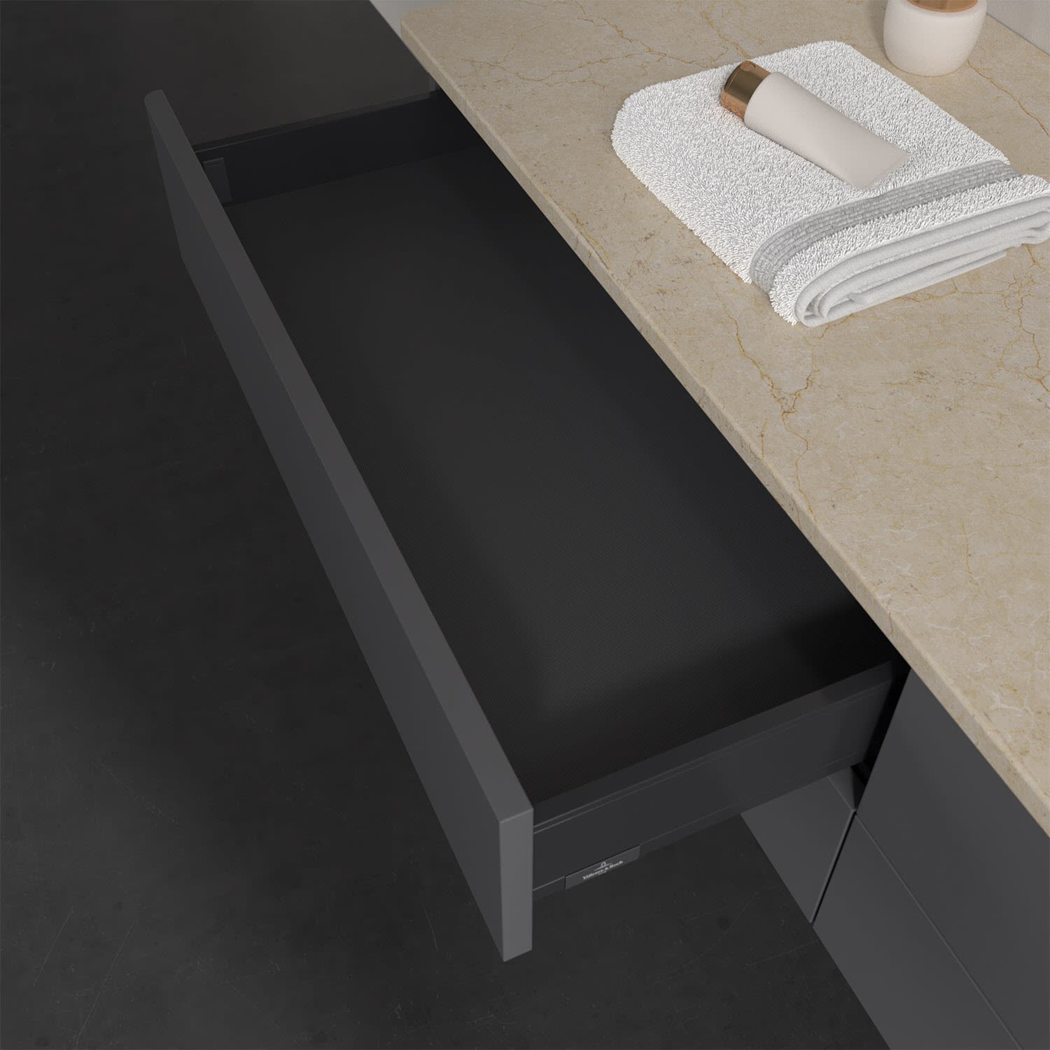 - kein Umfallen oder Verrutschen von Pflegeprodukten in den Schubladen dank rutschhemmendem Boden