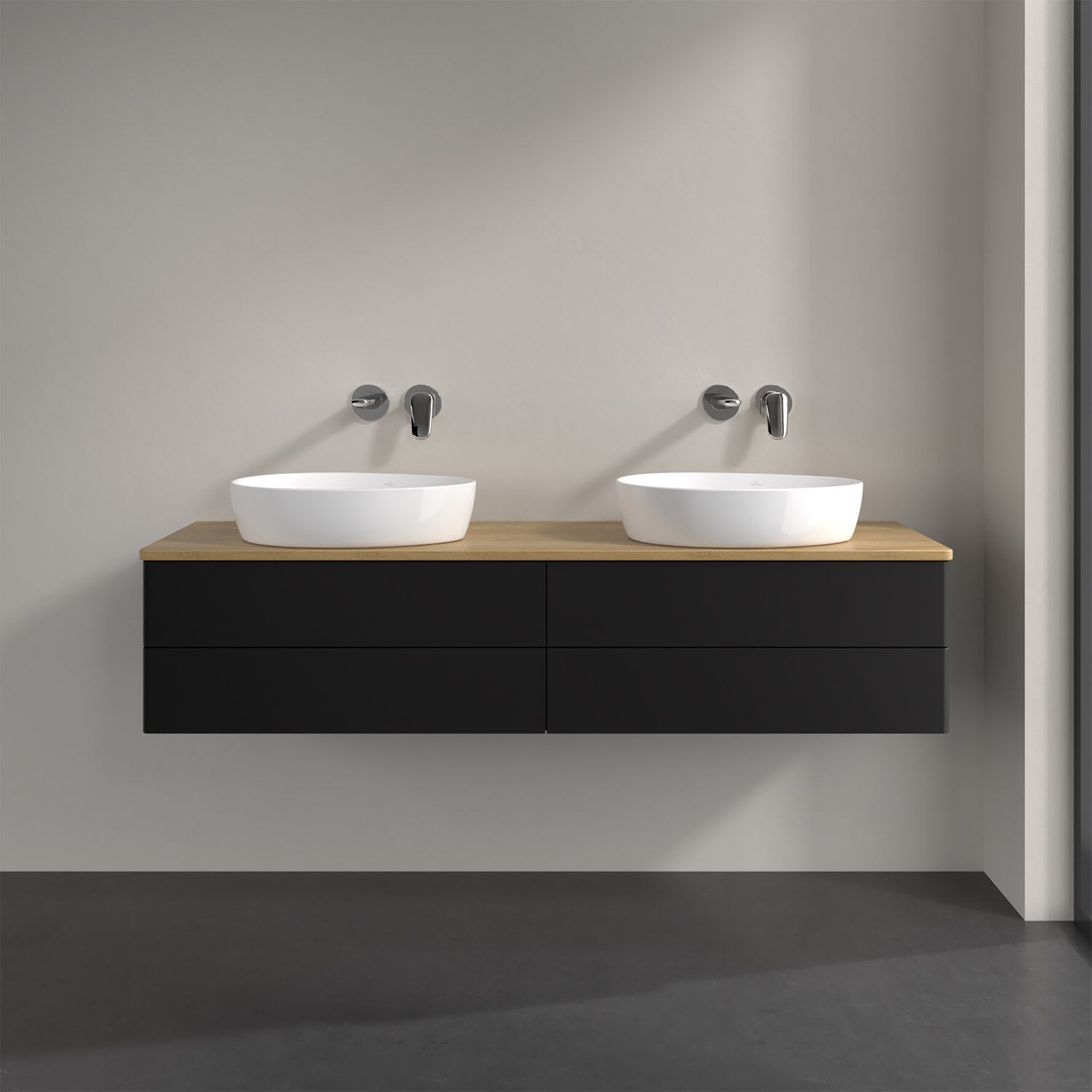 Villeroy & Boch Antao Waschbeckenunterschrank, 160 x 19 cm, 4 Auszüge, Fronten ohne Struktur, ohne Hahnloch, für Waschtisch links und rechts