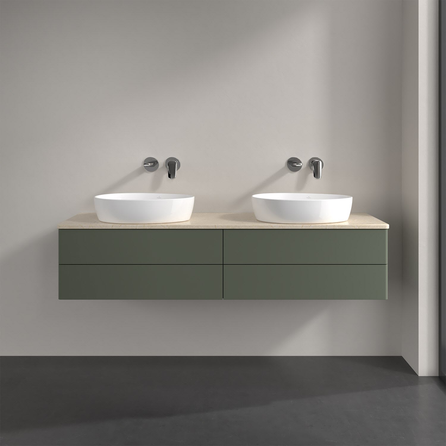 Villeroy & Boch Antao Waschbeckenunterschrank, 160 x 19 cm, 4 Auszüge, Fronten ohne Struktur, ohne Hahnloch, für Waschtisch links und rechts